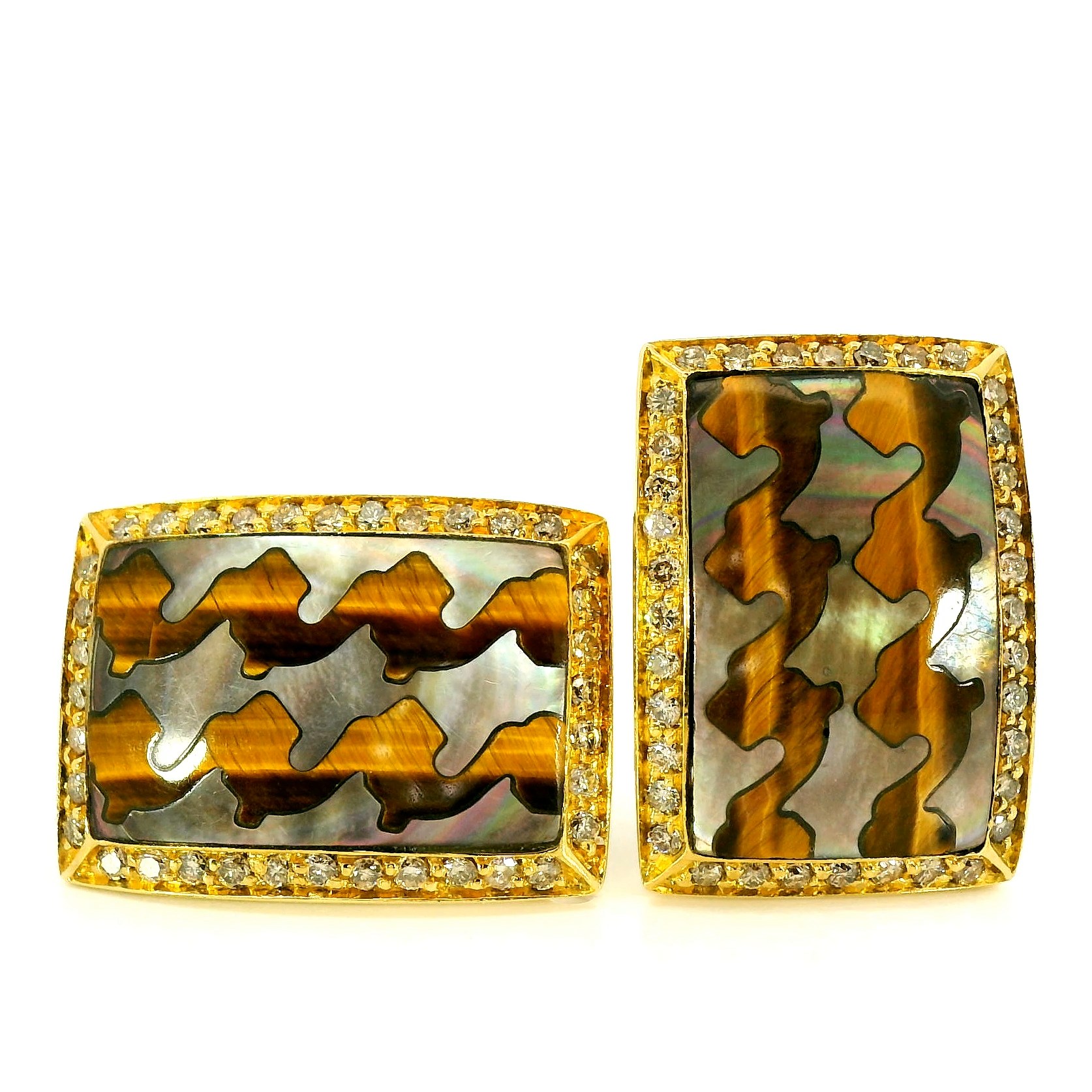 Представляем вашему вниманию оригинальные золотые серьги с перламутром, тигровым глазом 9.00ct, рубином 0.06ct и бриллиантами 0.86ct от всемирно известного бренда Roberto Coin.