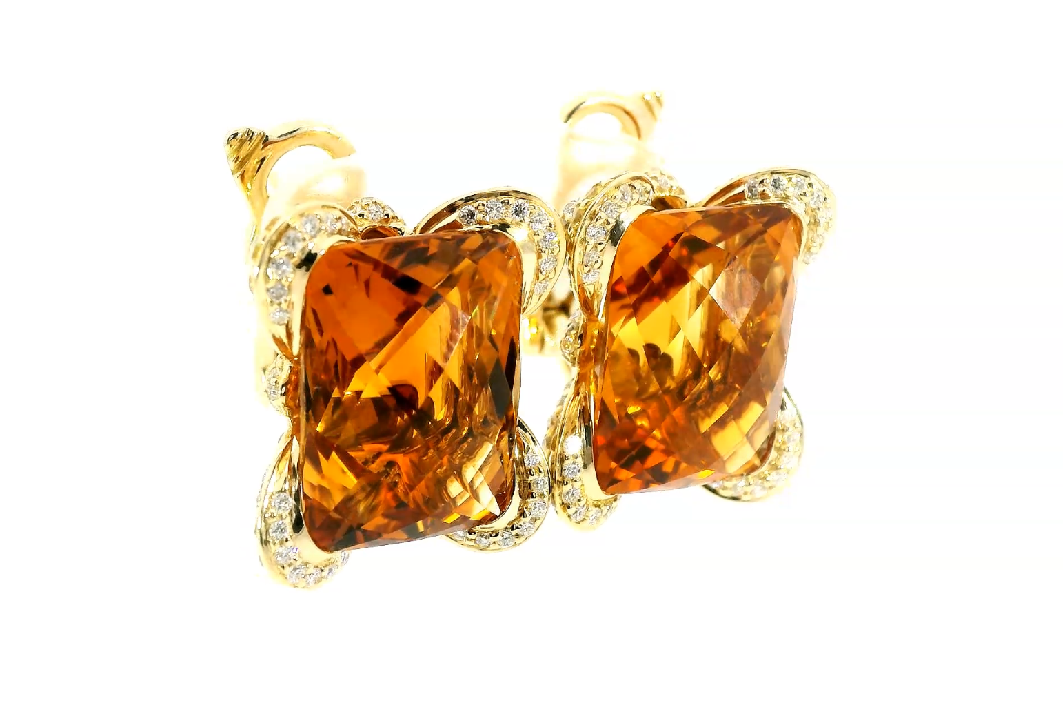 Представляем вашему вниманию оригинальные золотые серьги с цитринами 18.53ct, желтыми сапфирами 1.01ct и бриллиантами 0.76ct от всемирно известного бренда Belle Bague (GIM).
