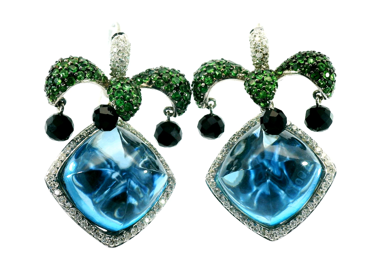 Представляем вашему вниманию оригинальные золотые серьги с топазами 33.50ct, тсаворитами 4.20ct, черным ониксом 2.70ct и бриллиантами 0.76ct от всемирно известного бренда Avakian из коллекции Joker.