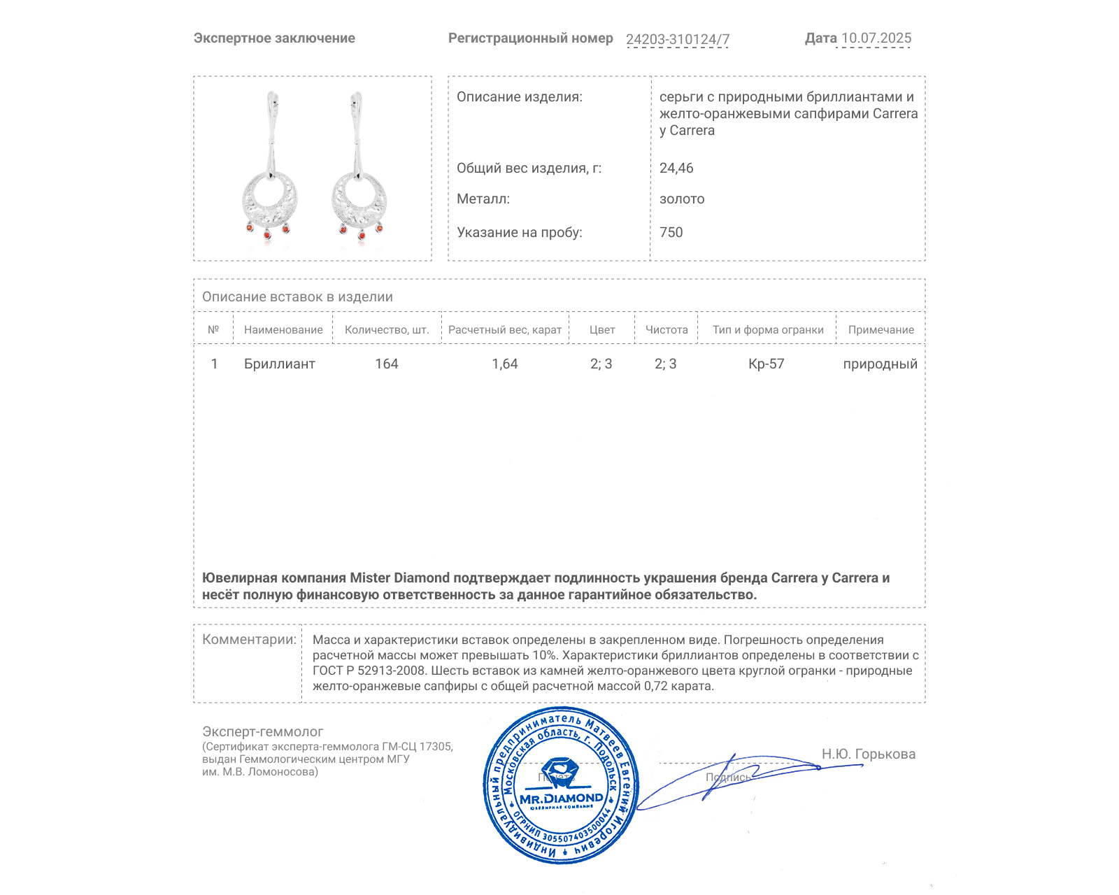 Материал: золото 750 пробы