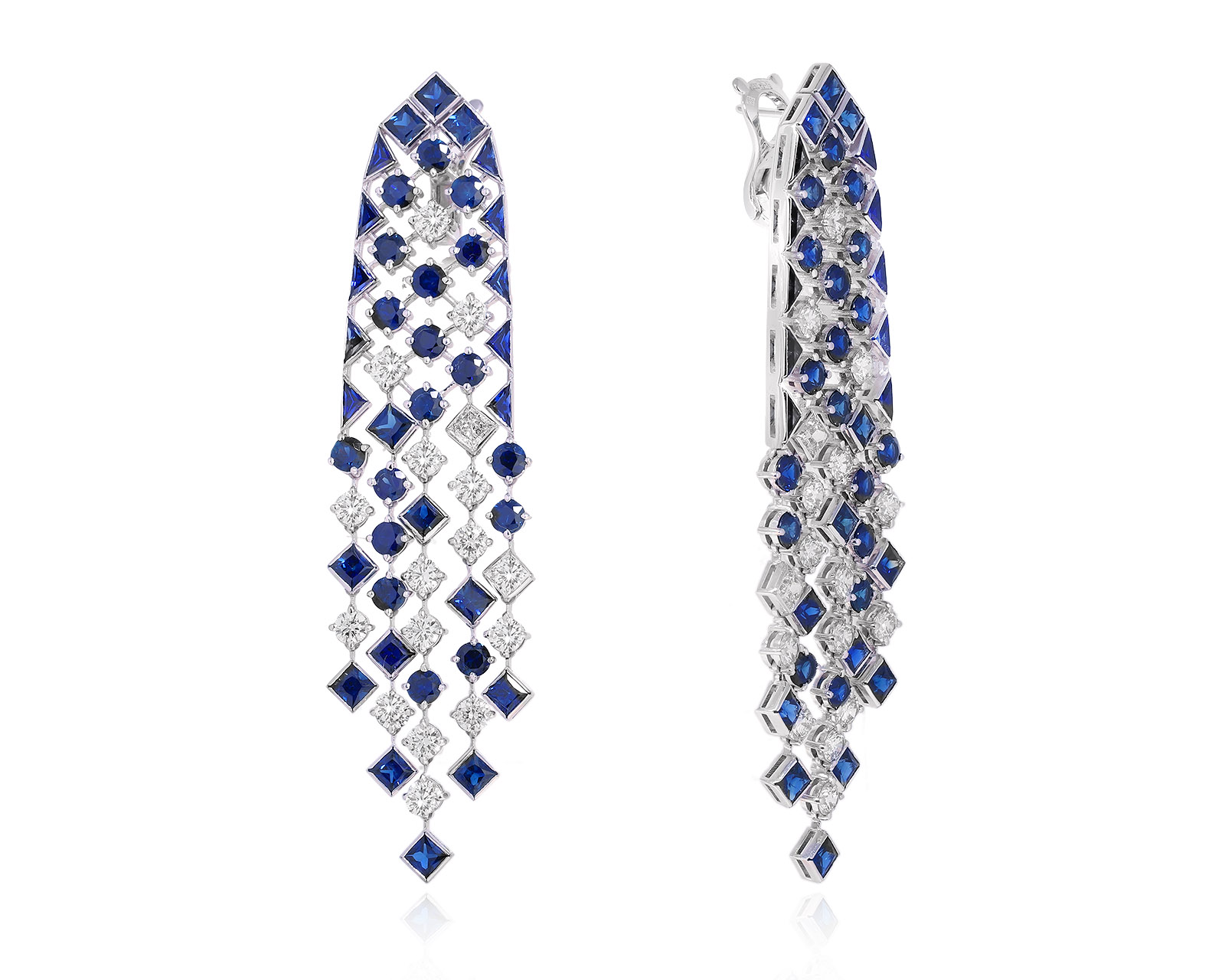 Золотые серьги с сапфирами 14.34ct и бриллиантами 5.58ct