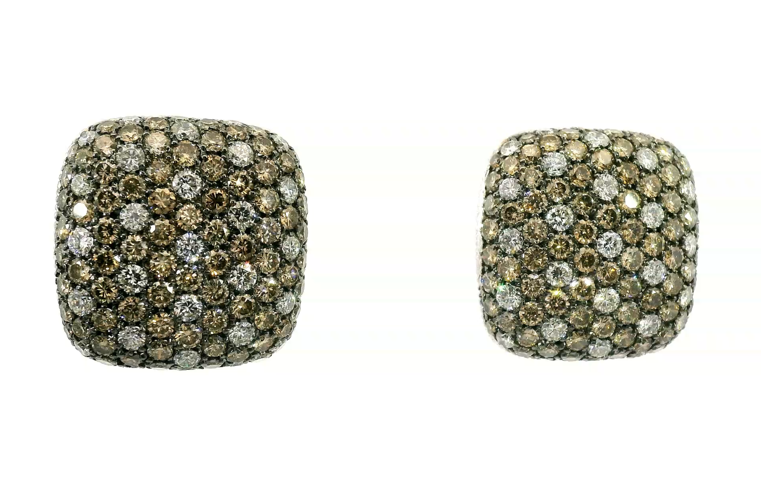 Представляем вашему вниманию великолепные золотые серьги с коньячными 6.94ct и белыми 2.16ct бриллиантами.