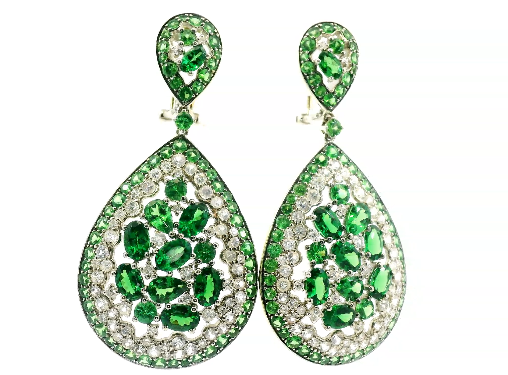 Представляем вашему вниманию восхитительные золотые серьги с тсаворитами 16.20ct, лейкосапфирами 2.85ct и бриллиантами 0.80ct.