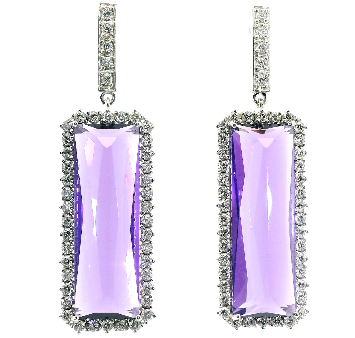 Представляем вашему вниманию золотые серьги с аметистами 24.90ct и бриллиантами 2.25ct.