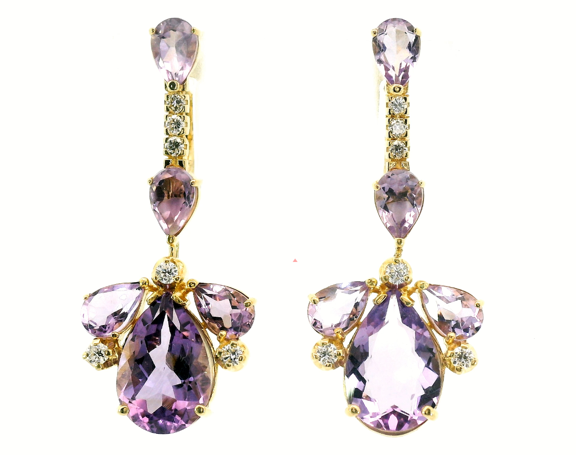 Представляем вашему вниманию золотые серьги с аметистами 6.80ct и бриллиантами 0.28ct.