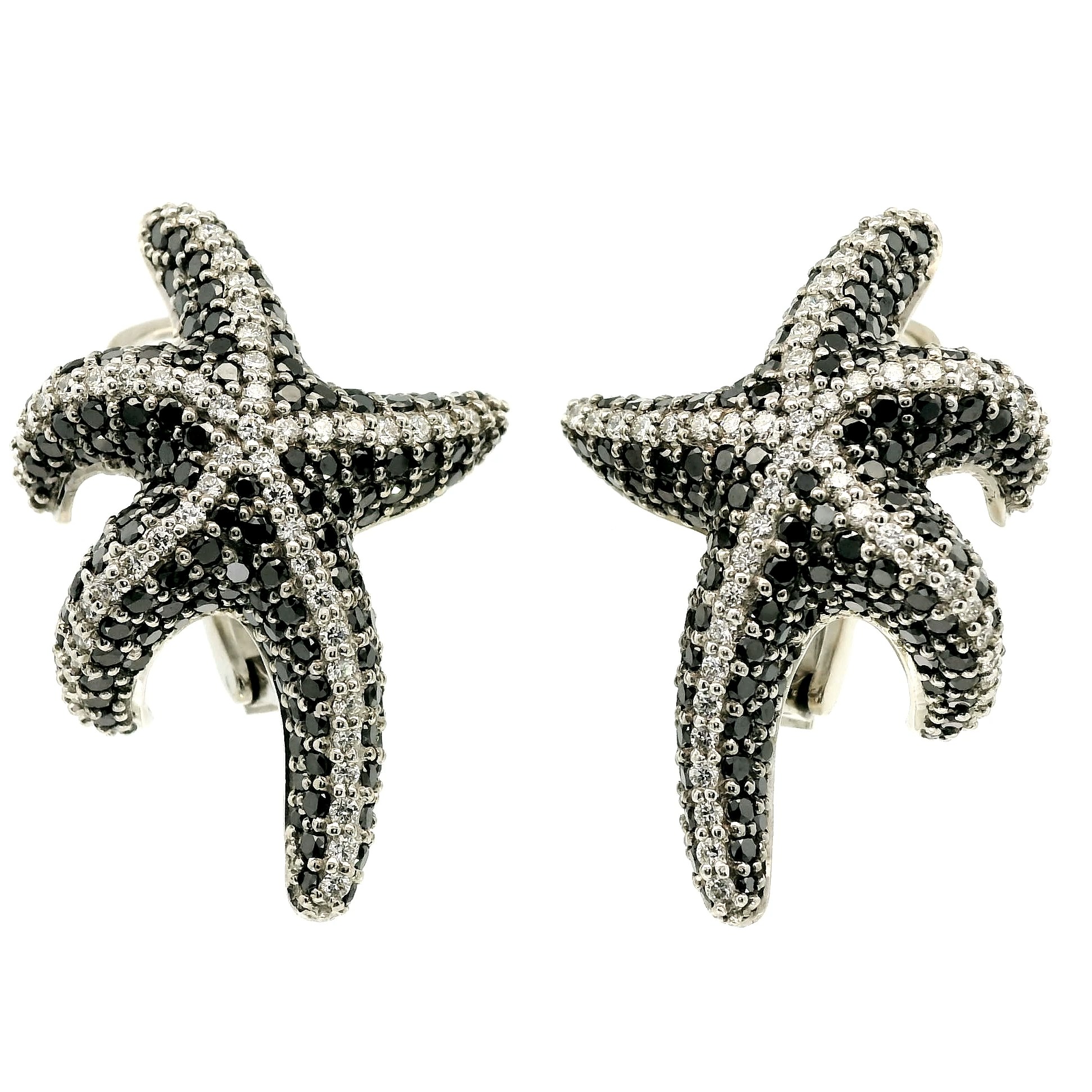 Представляем вашему вниманию золотые серьги с бесцветными 0.96ct и черными 2.78ct бриллиантами.
