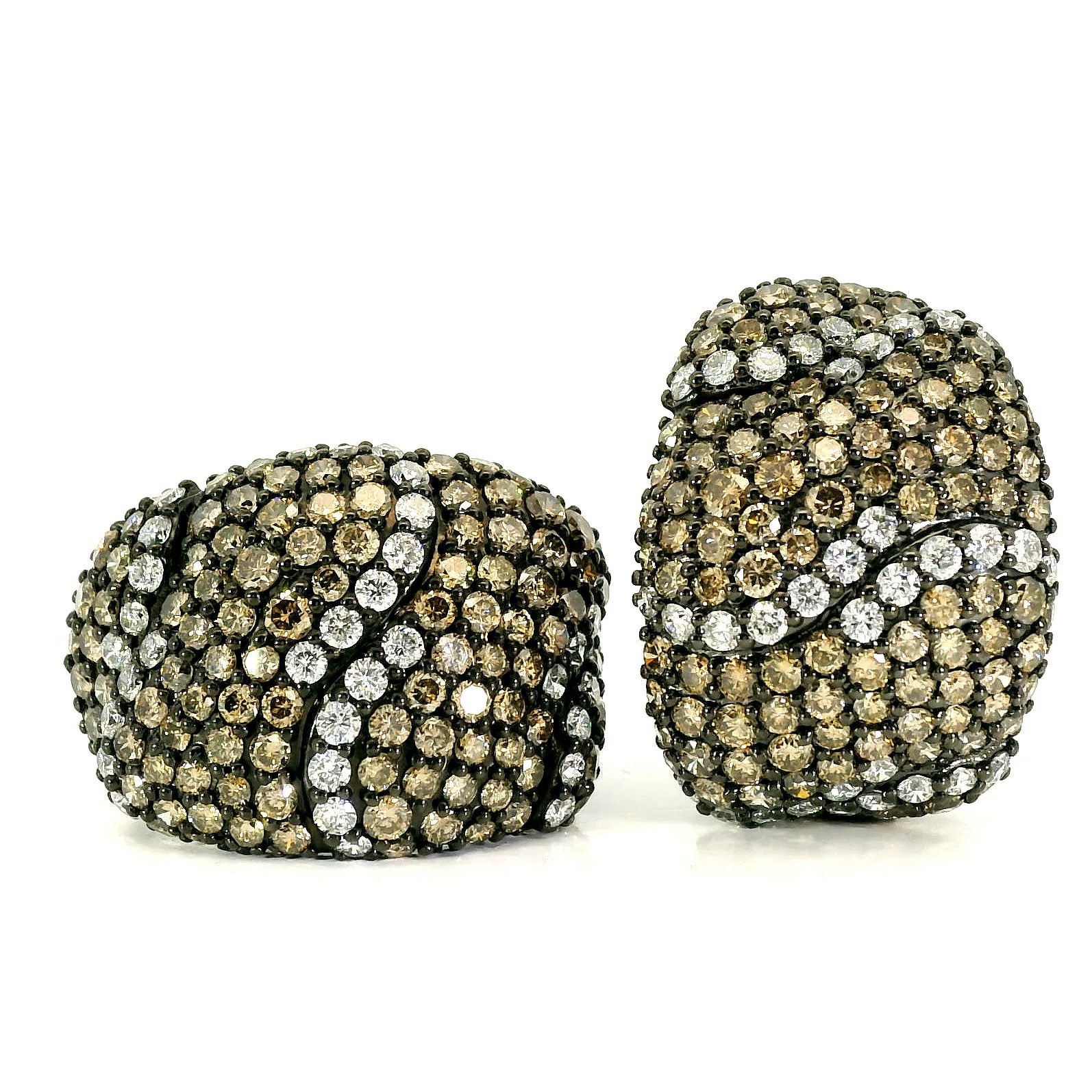 Представляем вашему вниманию золотые серьги с бесцветными 1.24ct и коньячными 4.53ct бриллиантами и турмалинами параиба 0.02ct.