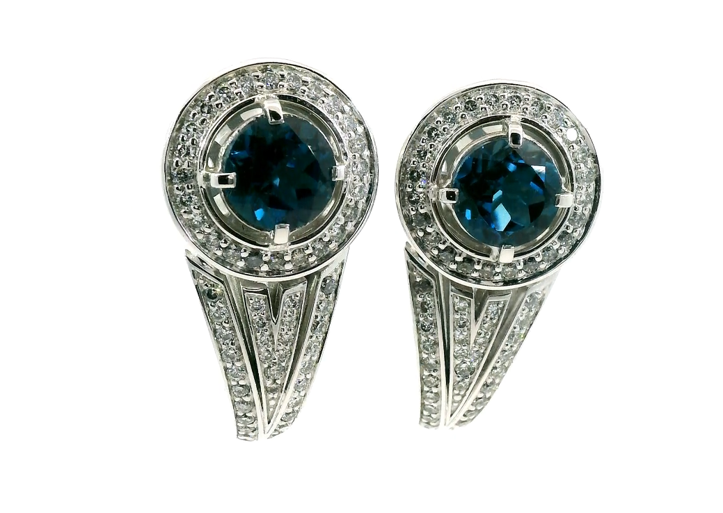 Представляем вашему вниманию роскошные золотые серьги с бриллиантами 1.10ct и топазами "London Blue" 3.22ct.