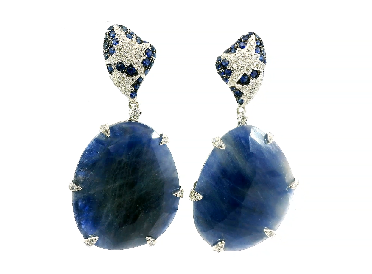 Представляем вашему вниманию золотые серьги с сапфирами 41.50ct и бриллиантами 0.60ct.
