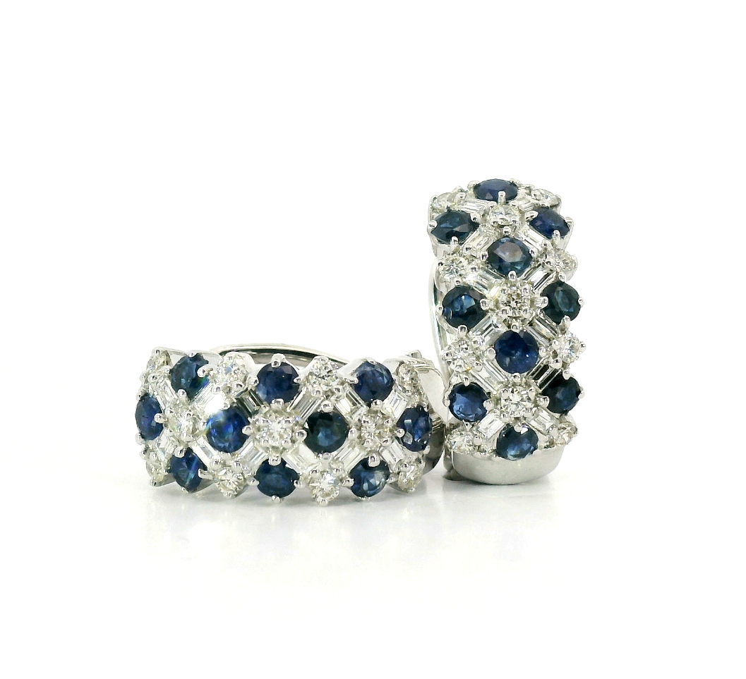 Представляем вашему вниманию золотые серьги с сапфирами 1.60ct и бриллиантами 1.44ct.