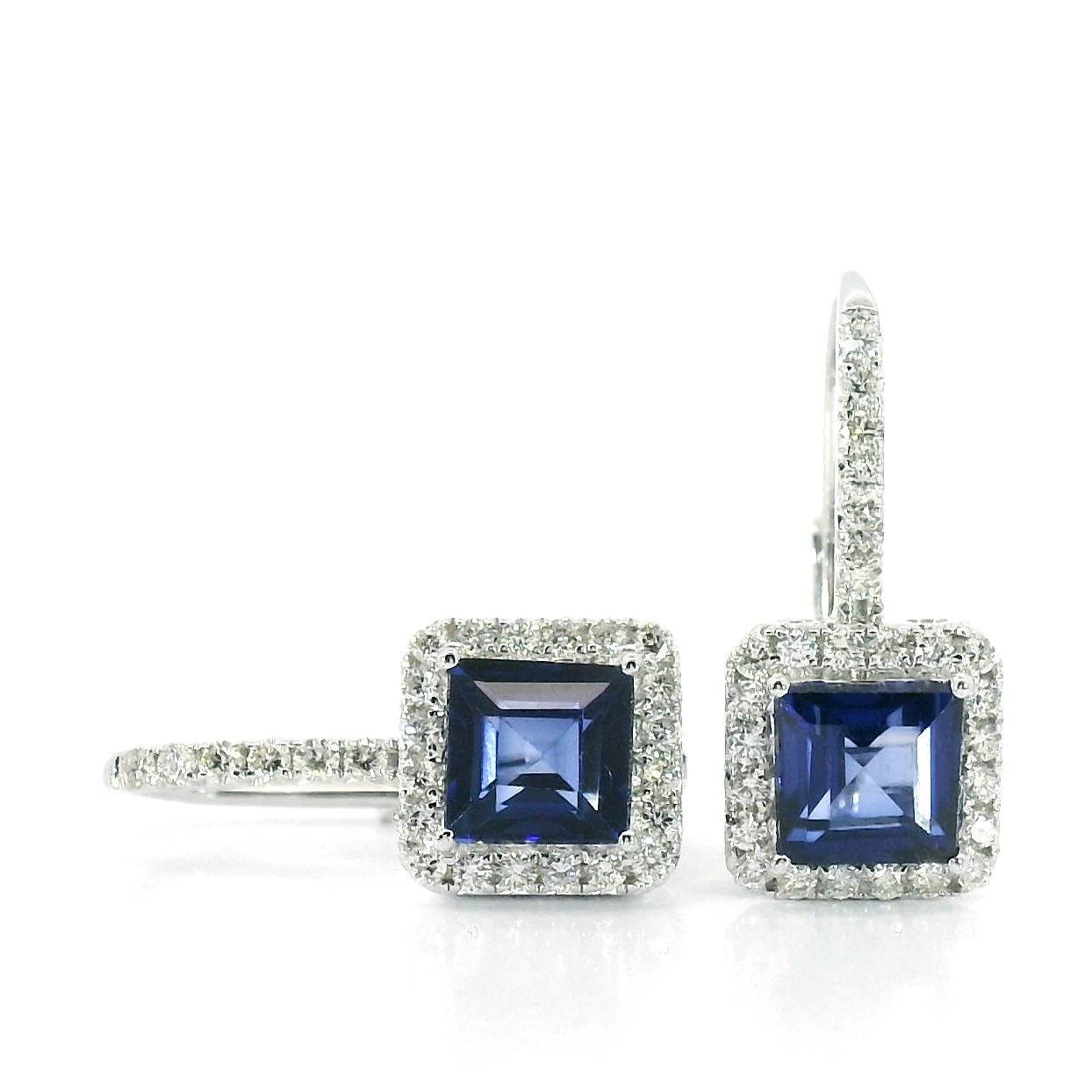 Представляем вашему вниманию золотые серьги с синтетическими сапфирами 2.60ct и бриллиантами 0.53ct.