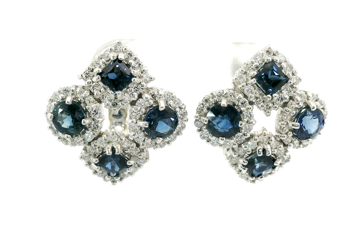 Представляем вашему вниманию золотые серьги с сапфирами 2.70ct и бриллиантами 0.96ct.