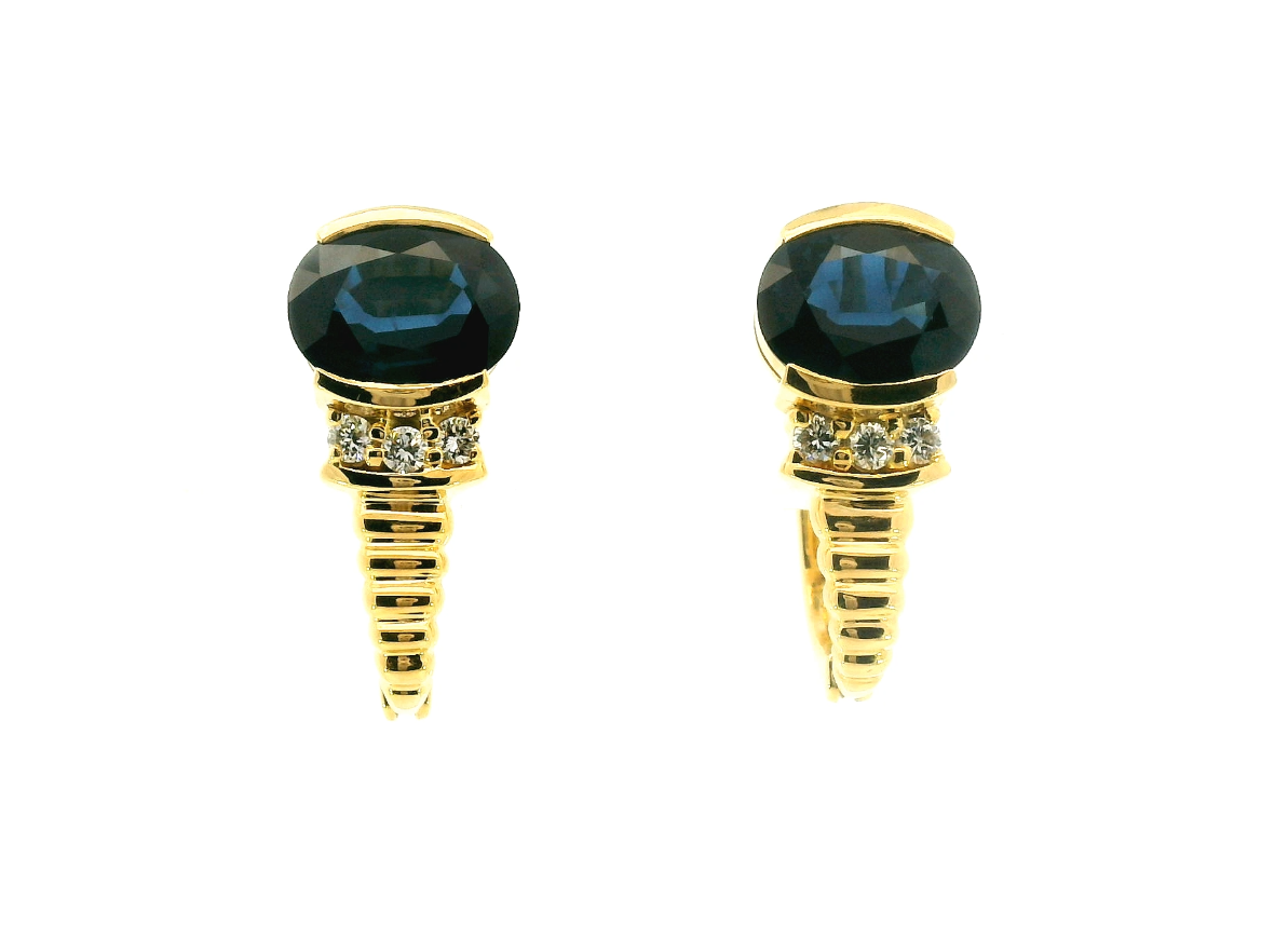 Представляем вашему вниманию золотые серьги с сапфирами 4.90ct и бриллиантами 0.18ct.