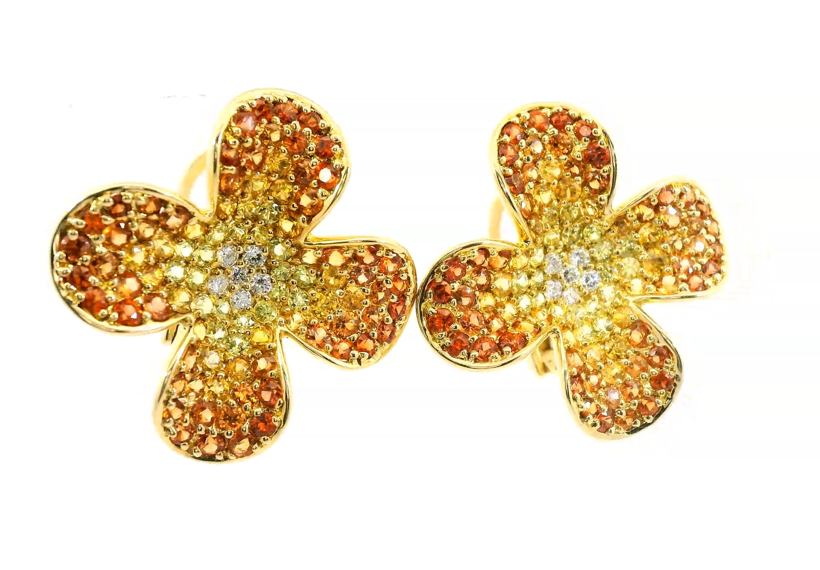 Представляем вашему вниманию золотые серьги с цветными сапфирами 5.52ct и бриллиантами 0.22ct.