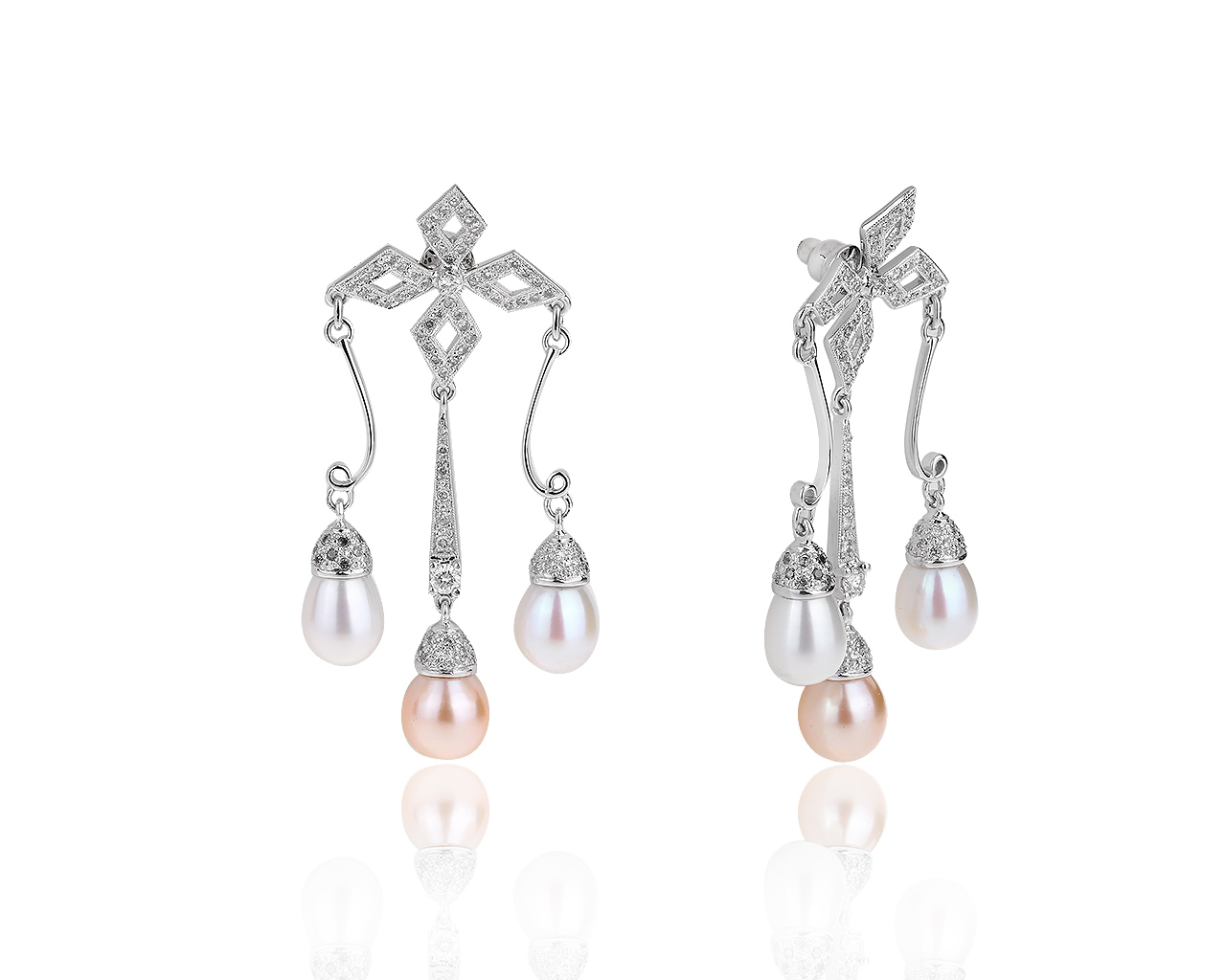 Золотые серьги с жемчугом 10.00 мм и бриллиантами 0.76ct 300125/1