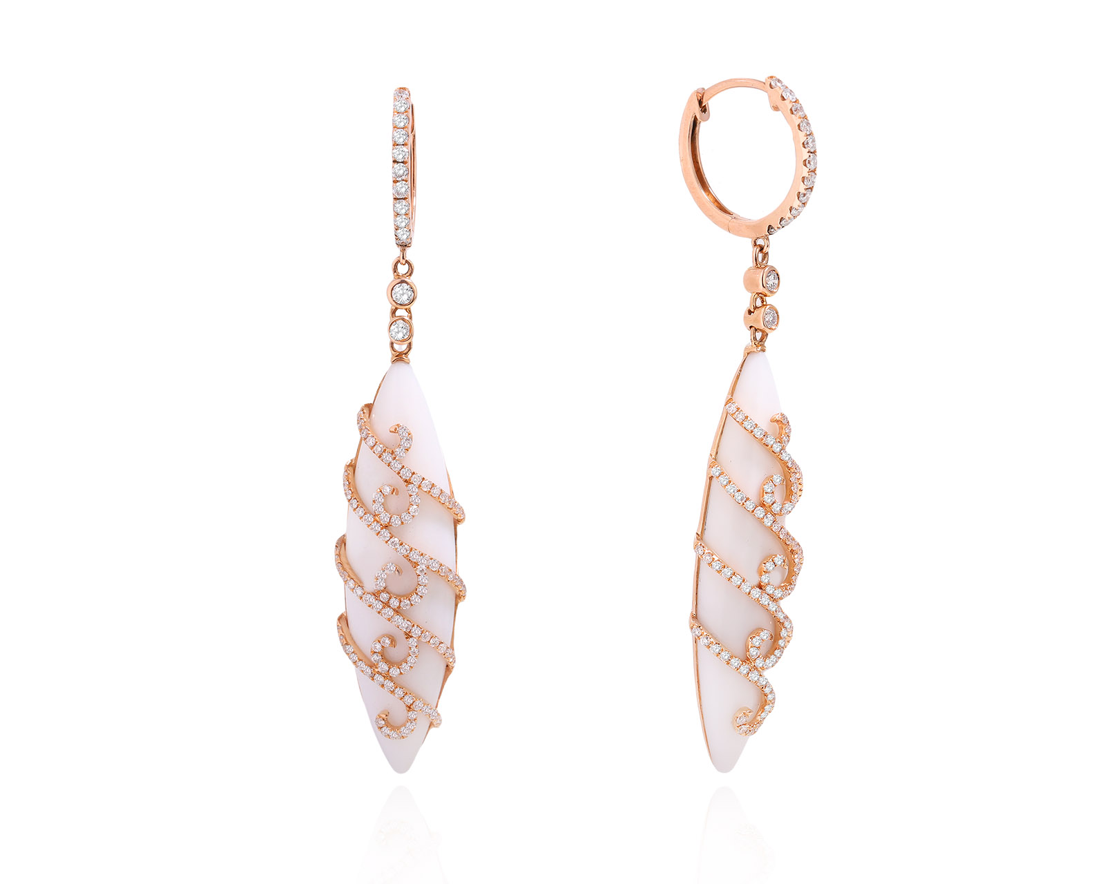 Оригинальные золотые серьги с белым ониксом 23.20ct Kayaly 010325/5