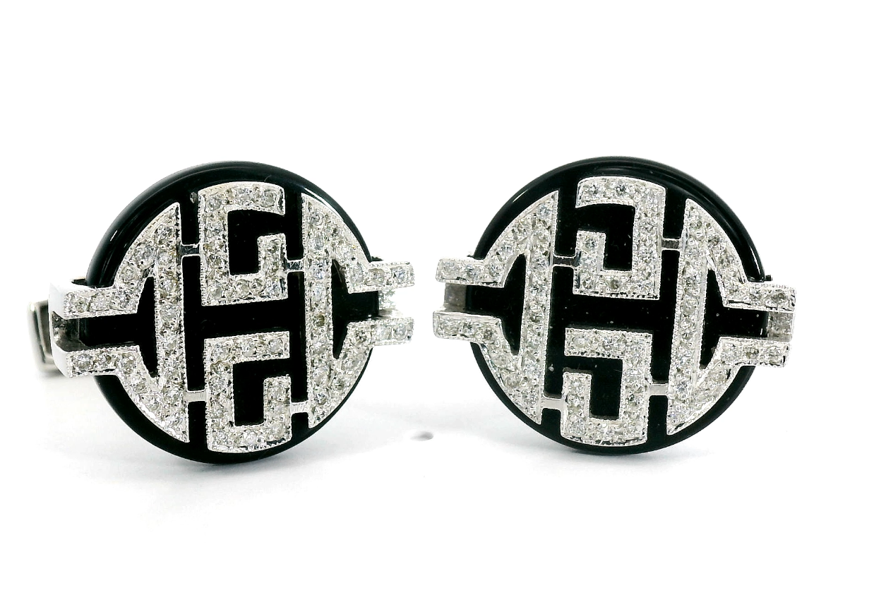 Представляем вашему вниманию оригинальные золотые запонки с ониксом и бриллиантами 0.70ct от всемирно известного бренда Safo Joaillerie.