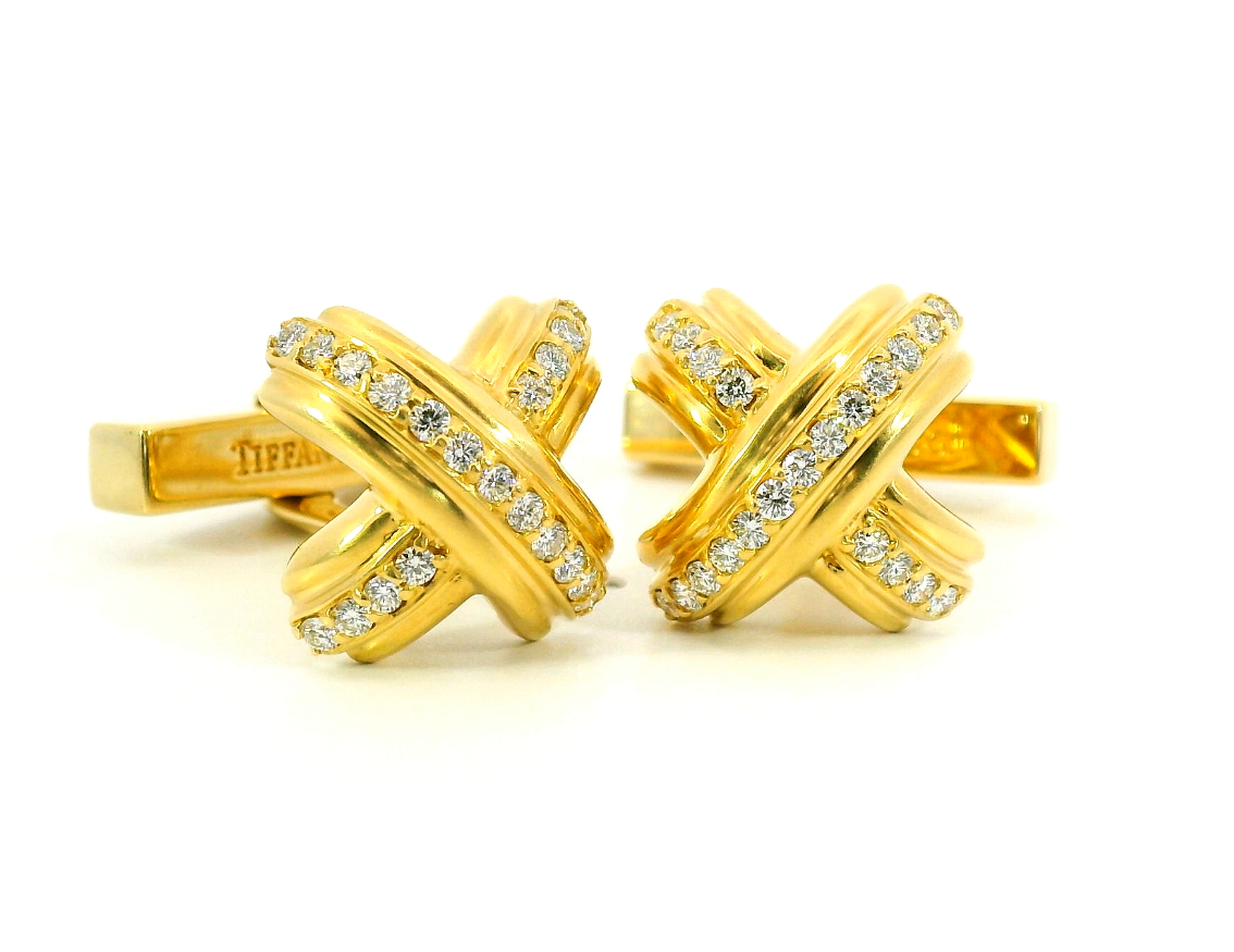 Представляем вашему вниманию оригинальные золотые запонки с бриллиантами 0.50ct от всемирно известного бренда Tiffany&Co из коллекции Signature X.