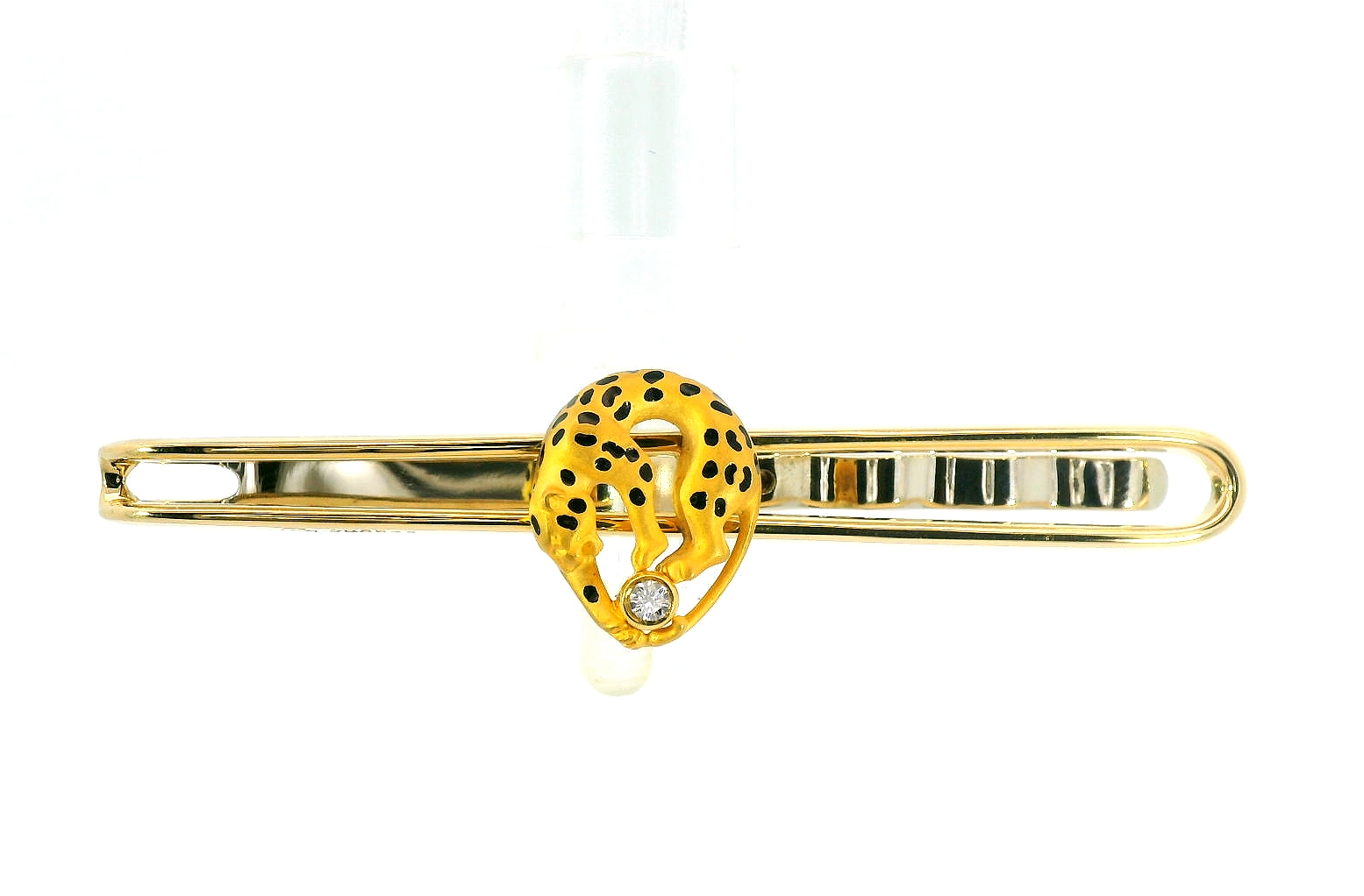 Представляем вашему вниманию оригинальный золотой зажим для галстука с эмалью и бриллиантом 0.03ct от всемирно известного бренда Carrera y Carrera из коллекции Panther.