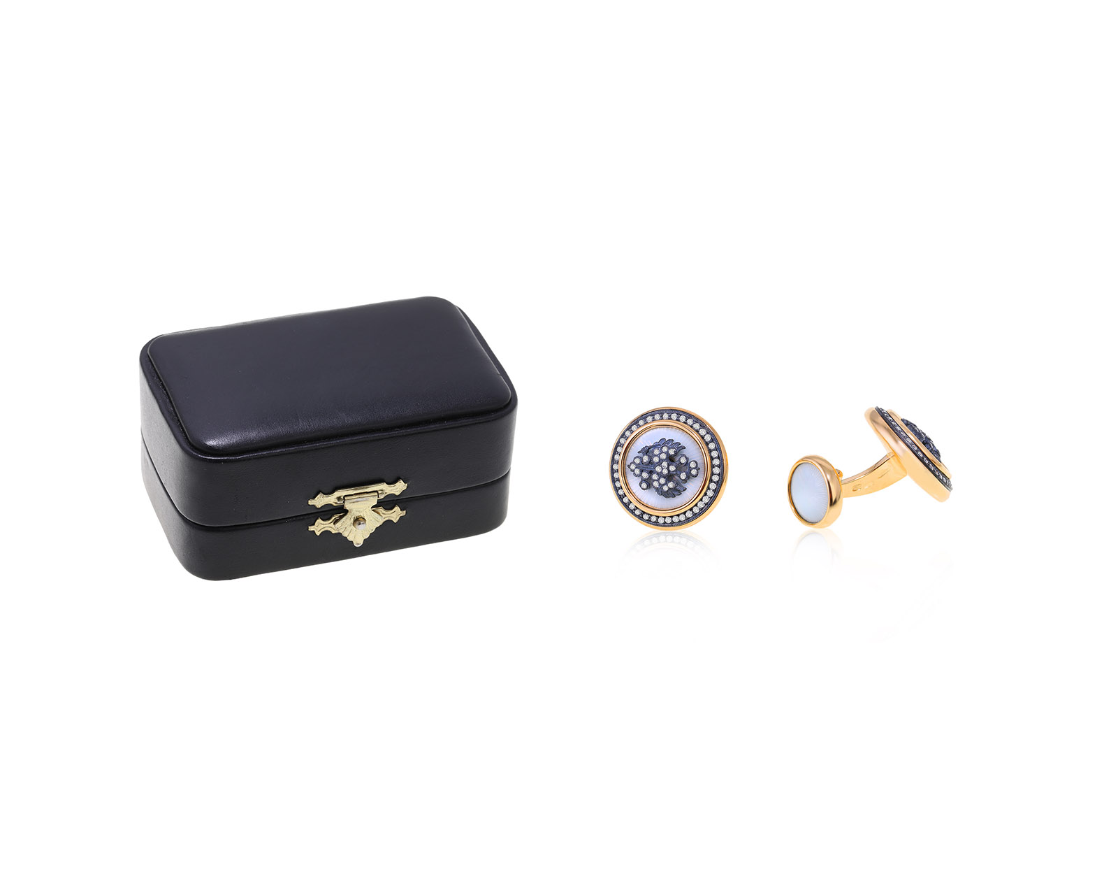 Оригинальные золотые запонки с черными бриллиантами De Grisogono 140219/КМ3