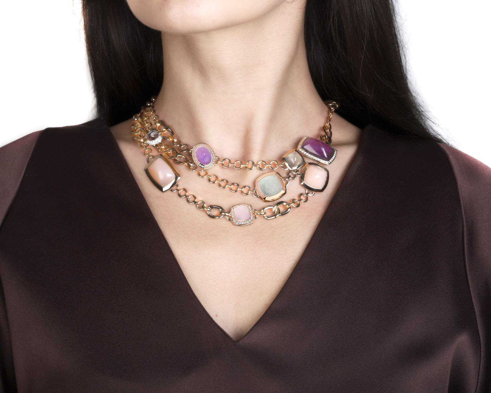 Оригинальное золотое колье с цветными камнями 72.60ct Valente 030225/3