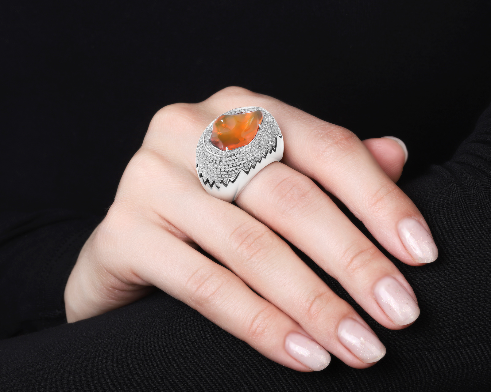 Каталог Mister Diamond включает украшения с опалом от Mauboussin, Tiffany & Co и небрендовые изделия с экспертным заключением геммолога. Нестареющий тренд — крупные кольца с роскошным центральным камнем. Такие украшения в полной мере раскрывают великолепие опала.