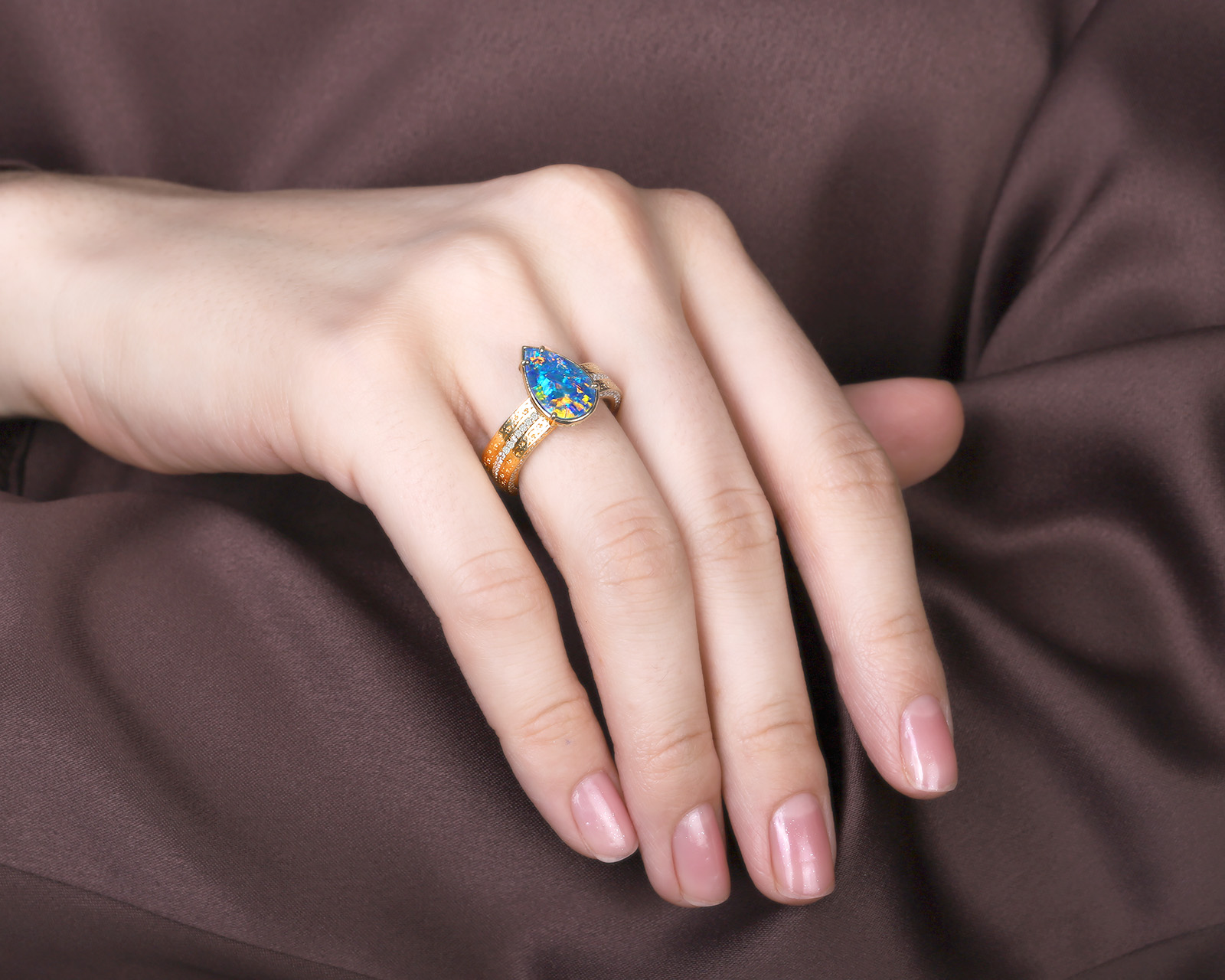 Опал выделяется тем, что у него нет характерной для других камней кристаллической структуры. Уникальный оптический эффект опалесценции выглядит, как тысячи сияющих звездочек, и всегда притягивает взгляды. Палитра насчитывает десятки оттенков — от молочно-белого до синего и красного. Одними из самых ценных считаются украшения с опалами глубокого черного цвета.