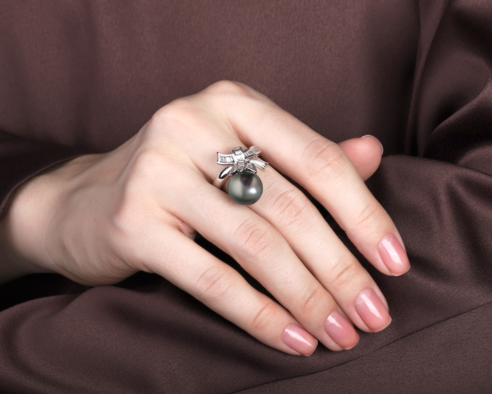 Золотое кольцо с жемчугом 12.35 мм и бриллиантами 0.80ct 200825/1