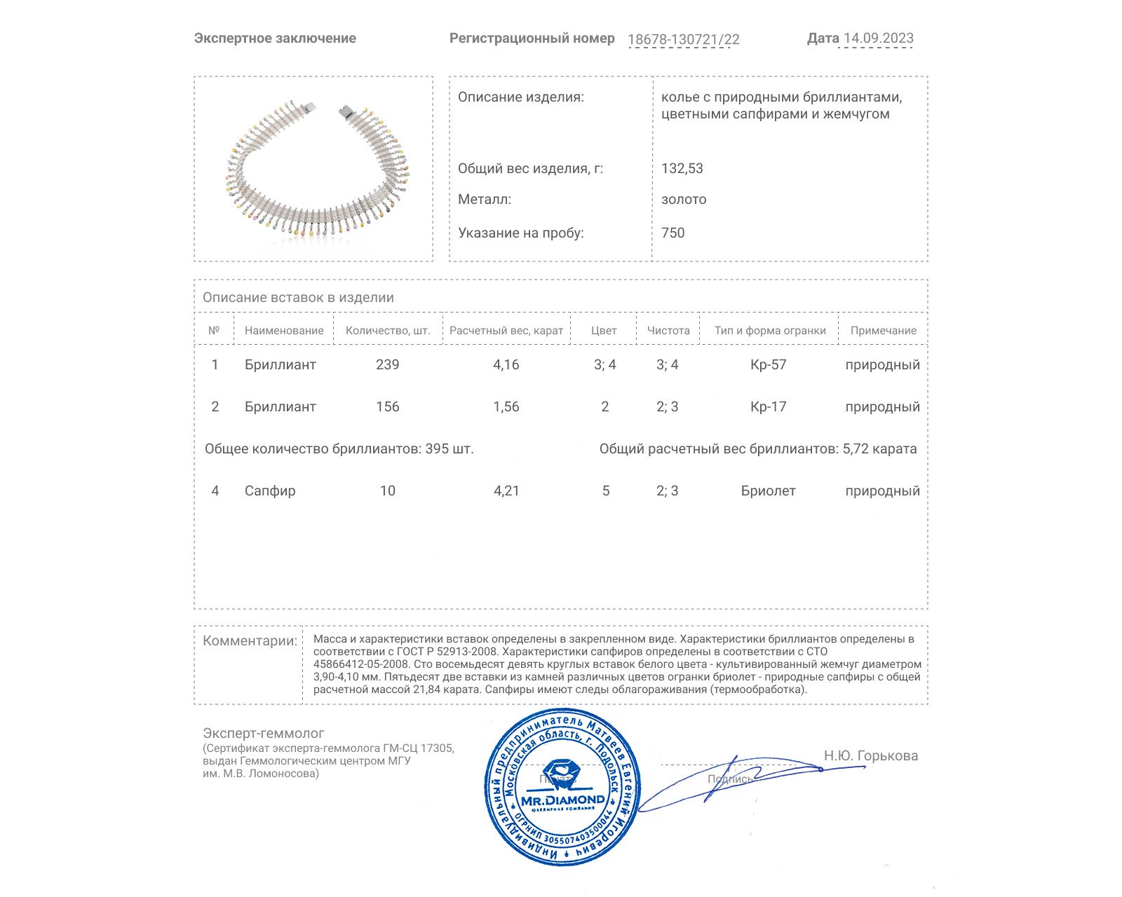 Золотое колье с цветными сапфирами 26.05ct 130721/22