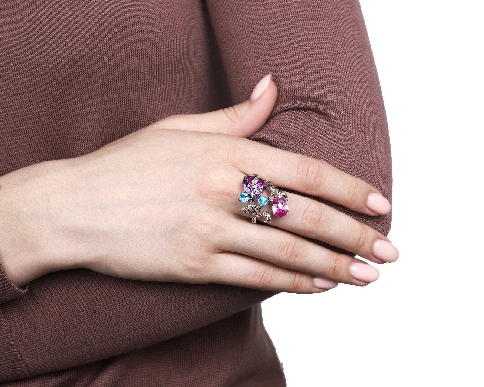 Чаще всего украшения с топазом очаровывают чистым голубым цветом. Однако палитра минерала намного шире. В природе встречаются бесцветные лейко-топазы, которые залегают близко к поверхности земли и теряют цвет под действием солнечных лучей. Среди самых редких и драгоценных — розовый камень империал, а также оранжево-красные минералы. Востребованные темные оттенки swiss blue получаются при облагораживании натуральных бесцветных или светло-голубых образцов. А популярный бренд London Blue экспериментирует с созданием ярко-синих и зеленоватых топазов.