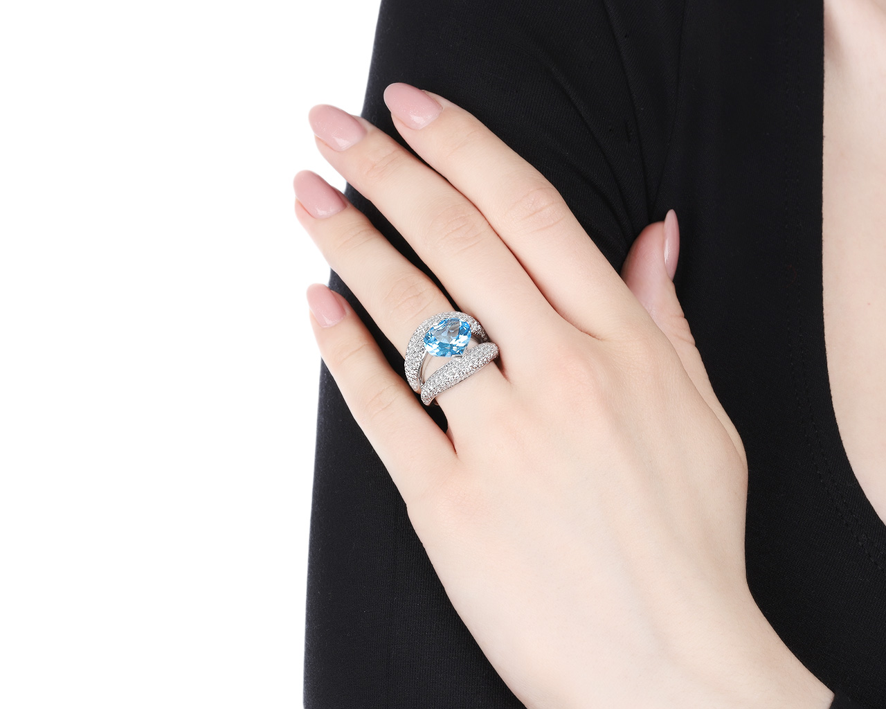 Топаз прекрасно сочетается в украшениях с другими драгоценными и полудрагоценными камнями. Бесцветные бриллианты усиливают его сияние, а аметисты, цитрины, хризолиты, турмалины создают с голубым минералом яркую комбинацию в южном стиле.
