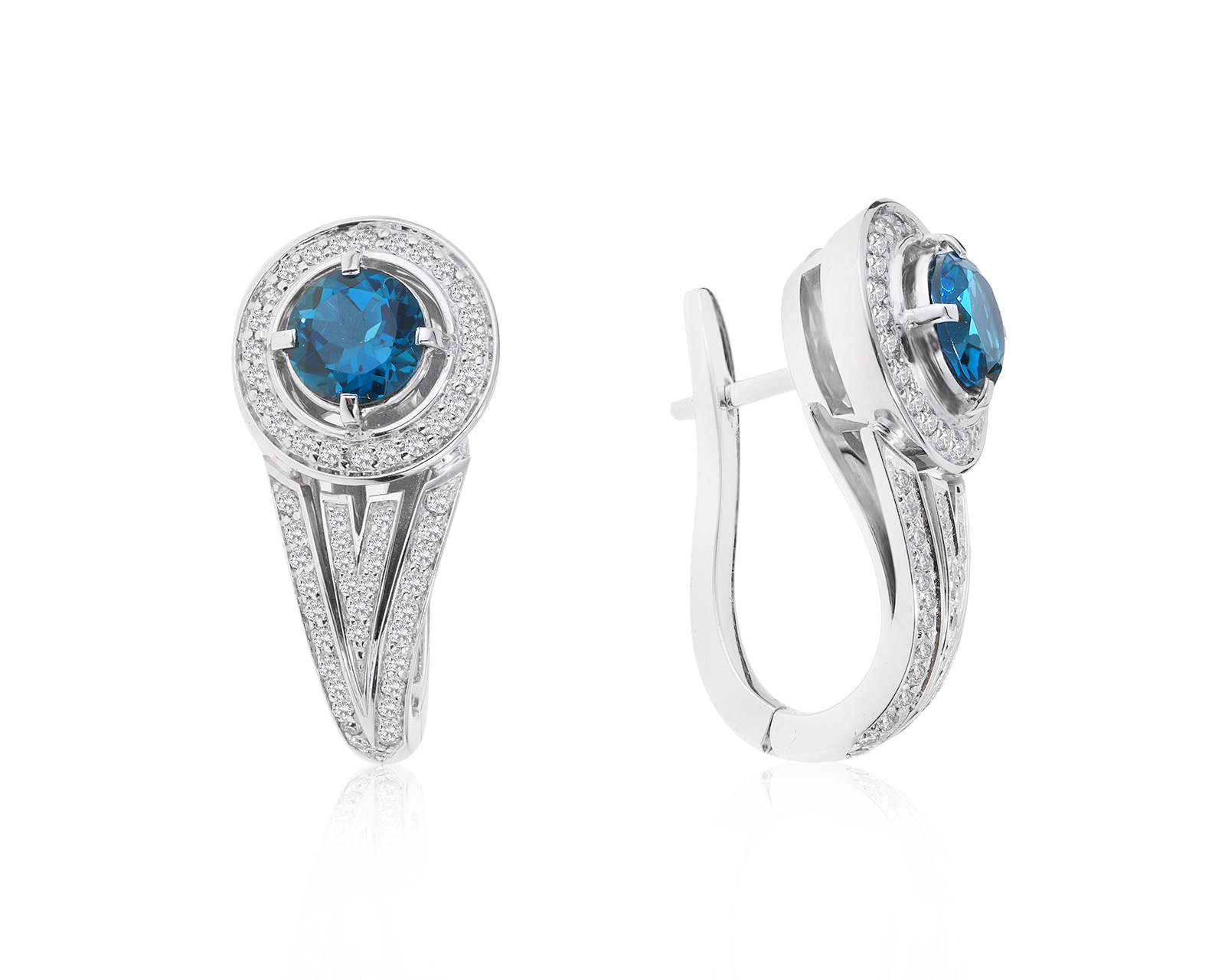 Золотые серьги с бриллиантами и топазами "London Blue" 040122/1