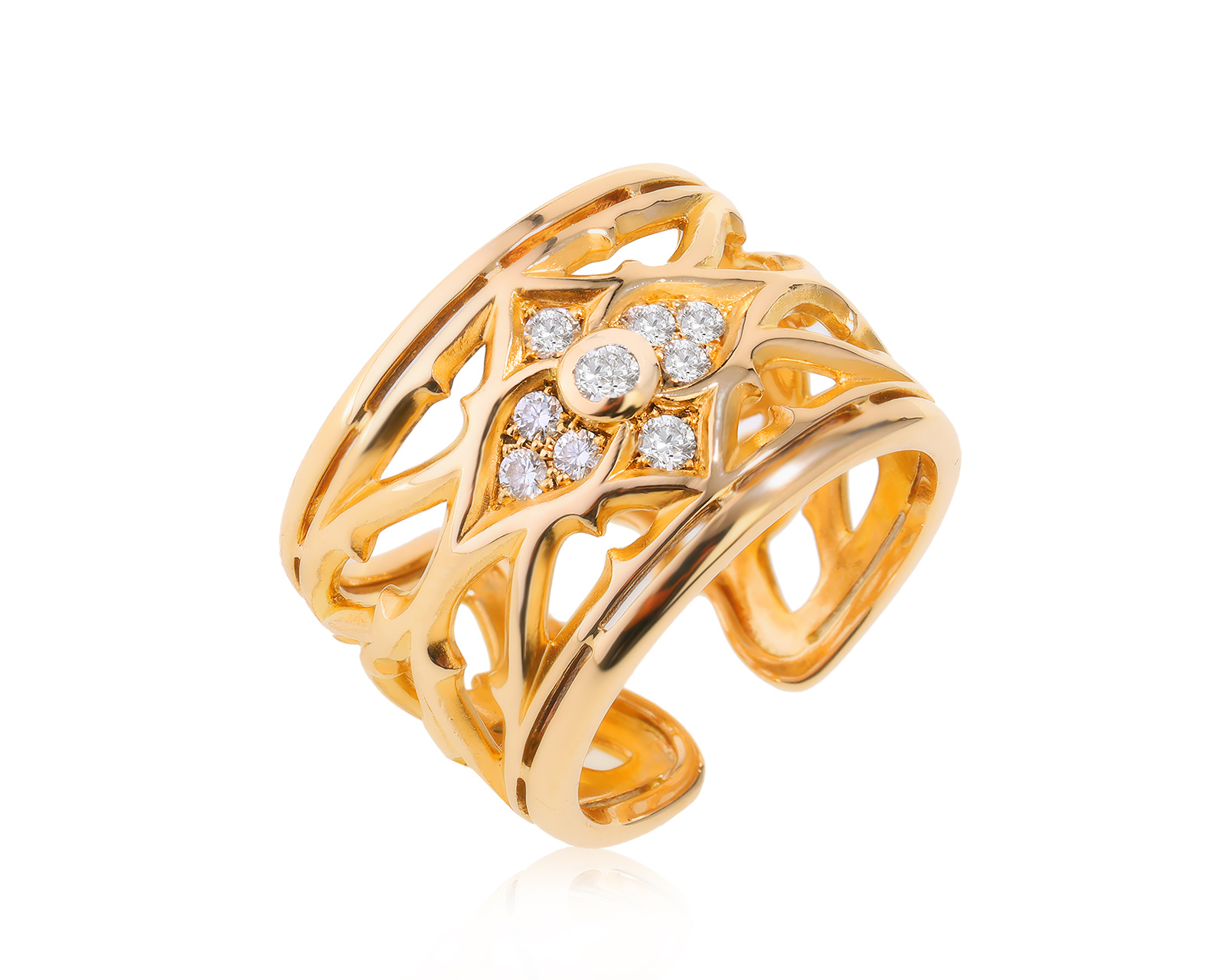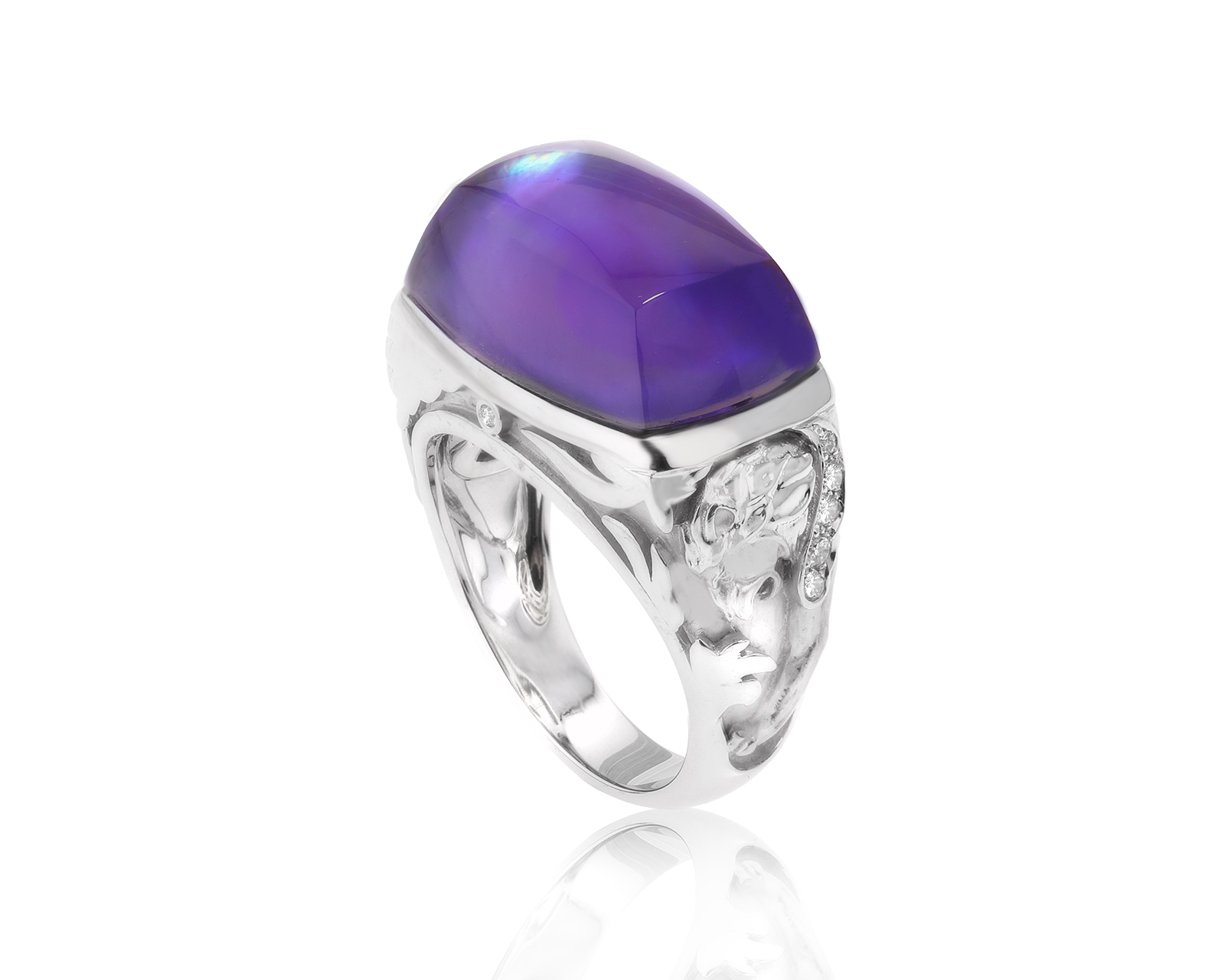 - широкие фигурные кольца с эмалевым покрытием и драгоценными вставками.