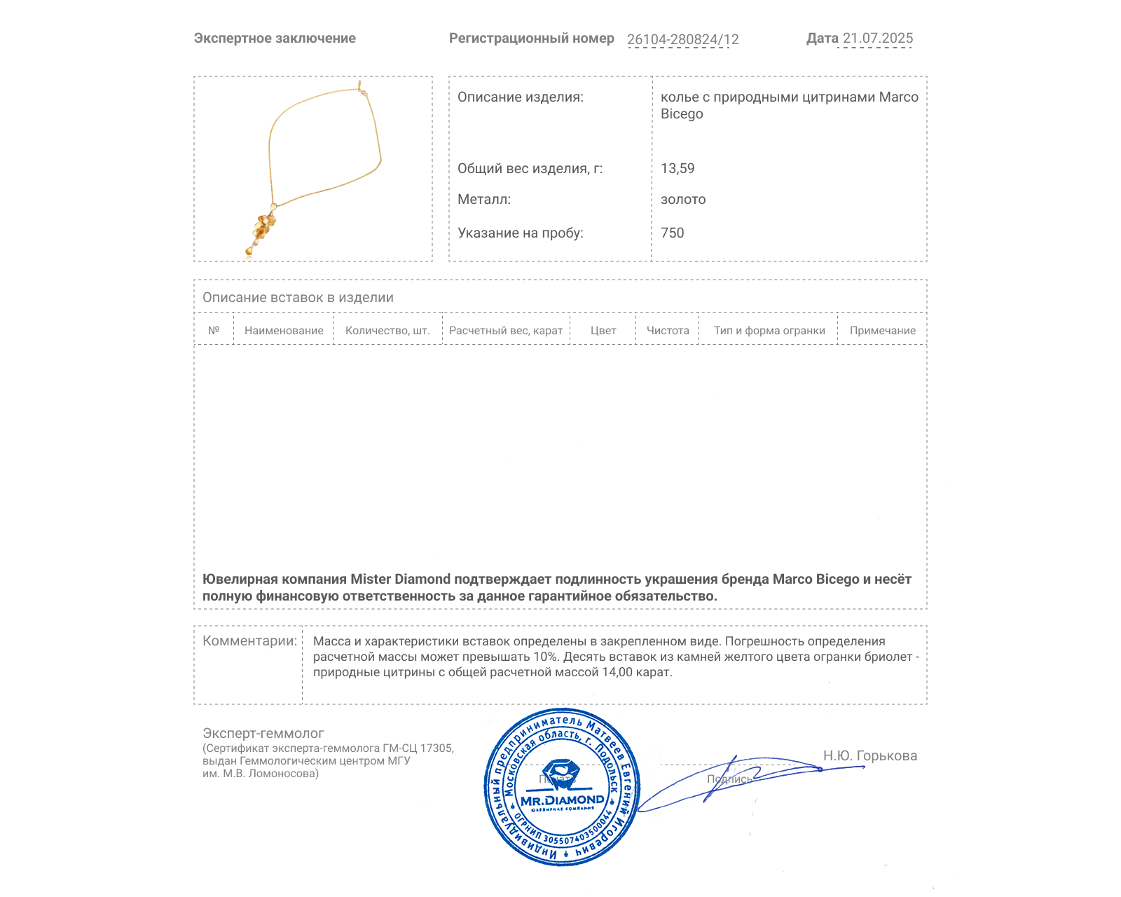 Оригинальное золотое колье с цитринами 14.00ct Marco Bicego 280824/12