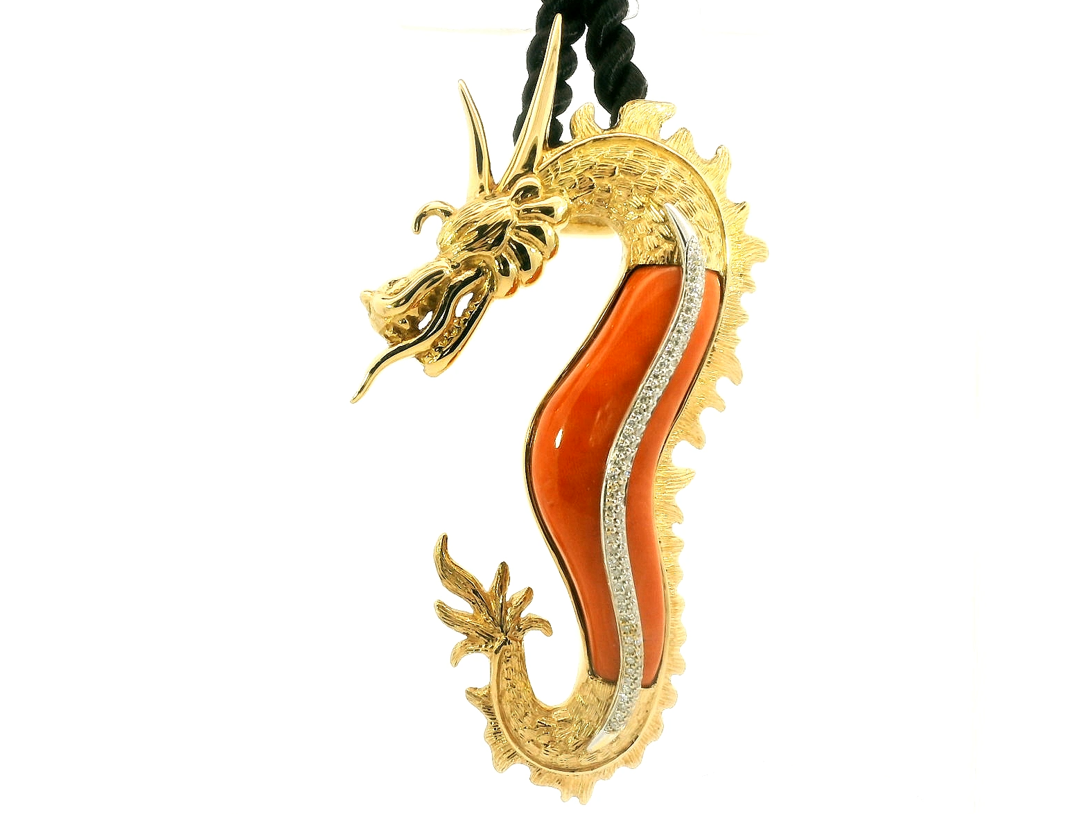 Представляем вашему вниманию эстетичную золотую подвеску с кораллом и бриллиантами 0.65ct.