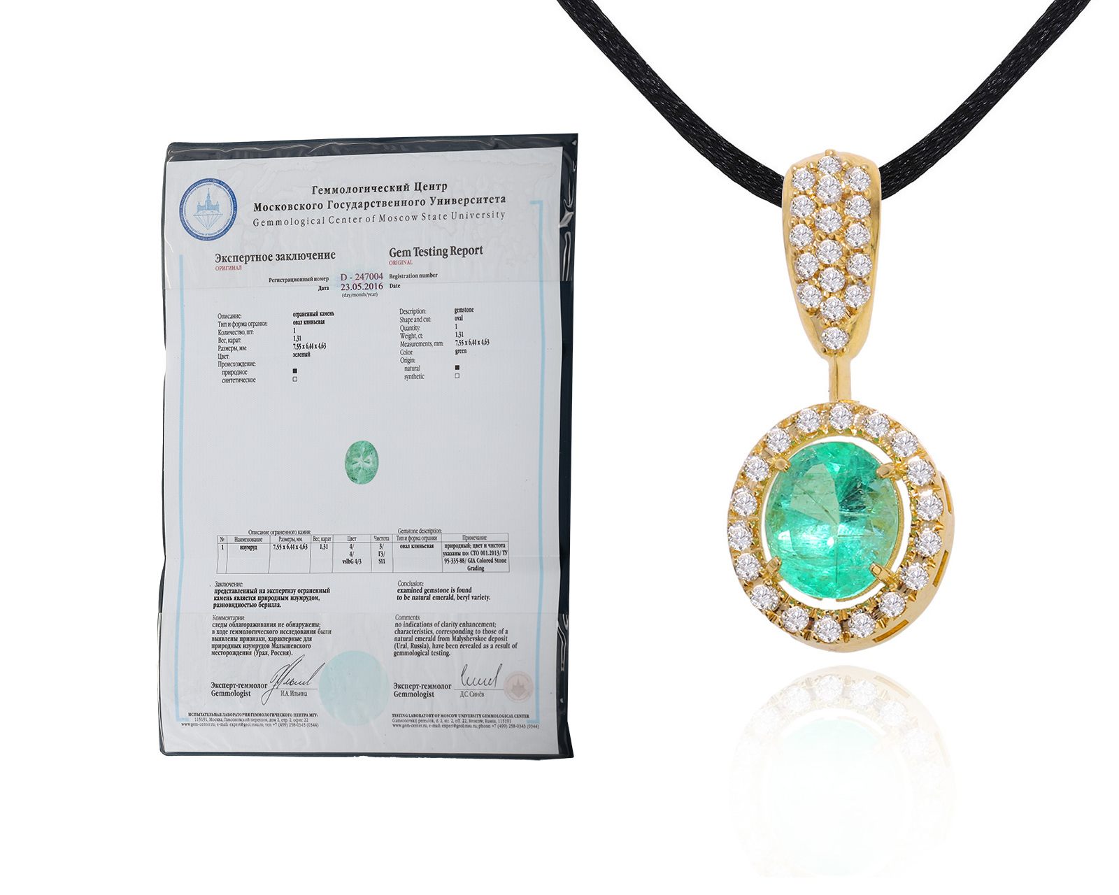 Золотой кулон с уральским изумрудом 1.31ct