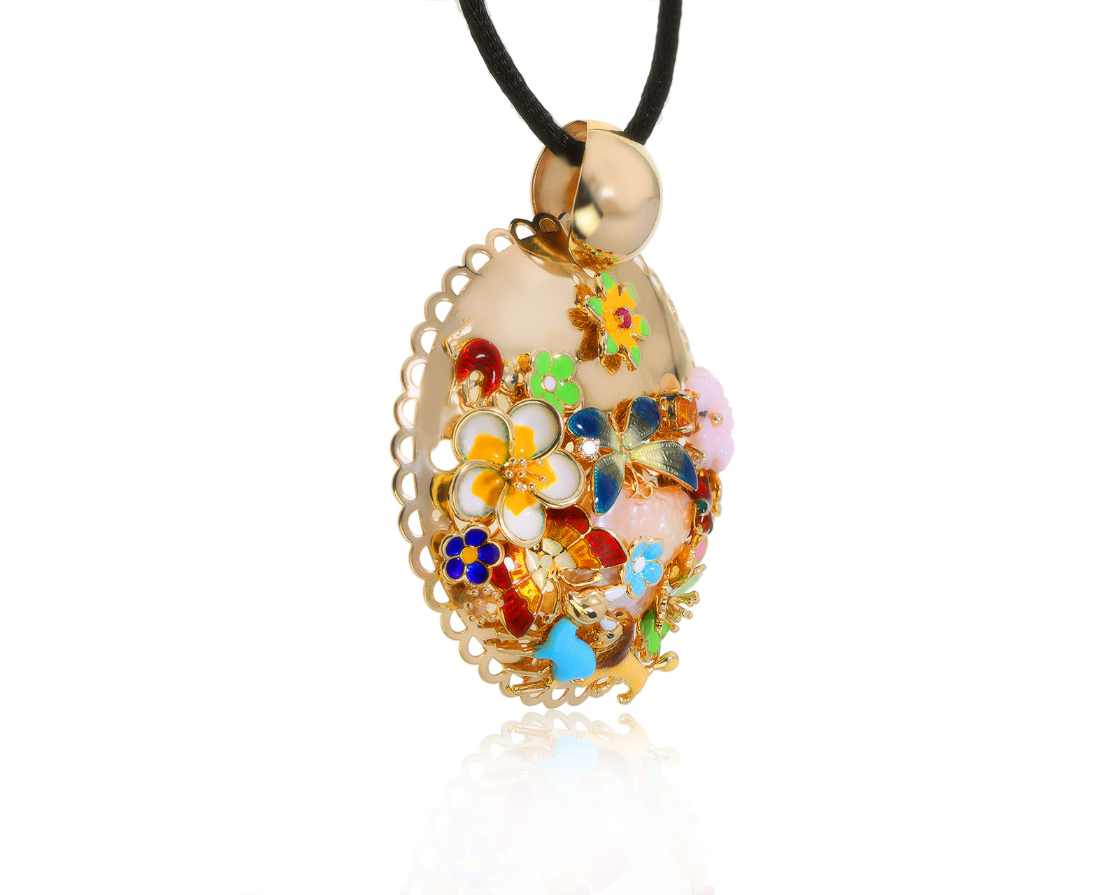 Представляем вашему вниманию оригинальное золотое колье с эмалью, белым синтетическим агатом 5.30ct, лейкосапфирами 0.07ct и бриллиантом 0.03ct от всемирно известного бренда Roberto Bravo из коллекции White Dreams.