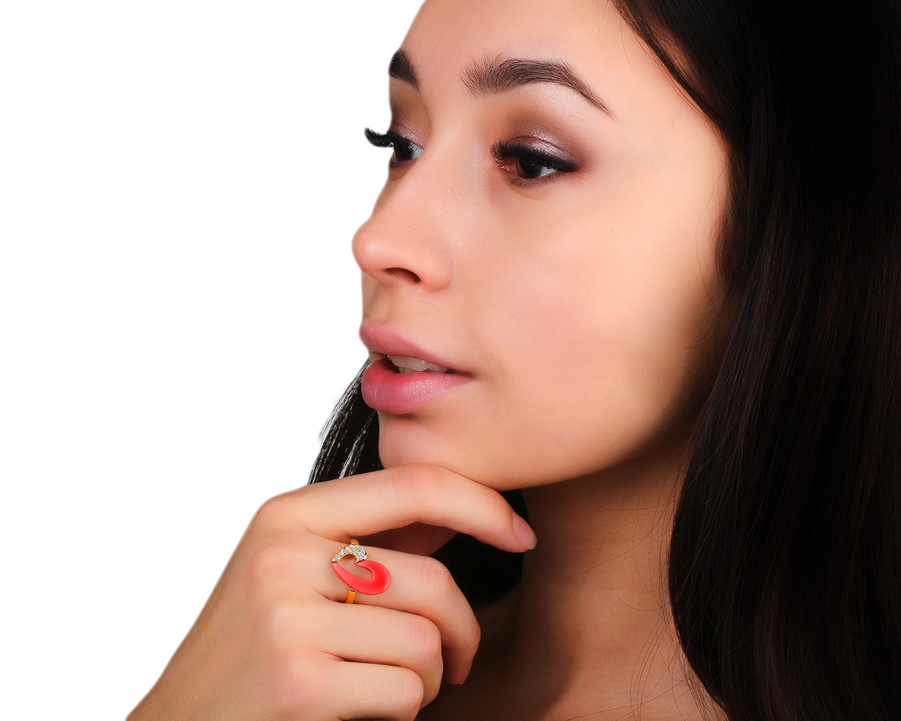 Оригинальное золотое кольцо с кораллами и бриллиантами 0.10ct BIBIGI 230119/12