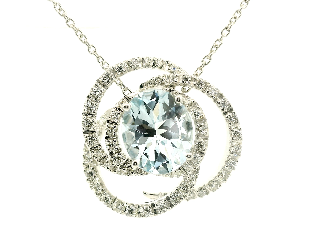 Представляем вашему вниманию оригинальное золотое колье с аквамарином 4.50ct и бриллиантами 0.82ct от всемирно известного бренда Damiani из коллекции Rose.