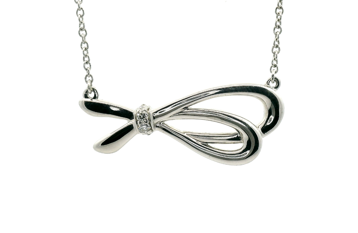 Представляем вашему вниманию оригинальное золотое колье с бриллиантами 0.04ct от всемирно известного бренда Tiffany&Co из коллекции Bow.