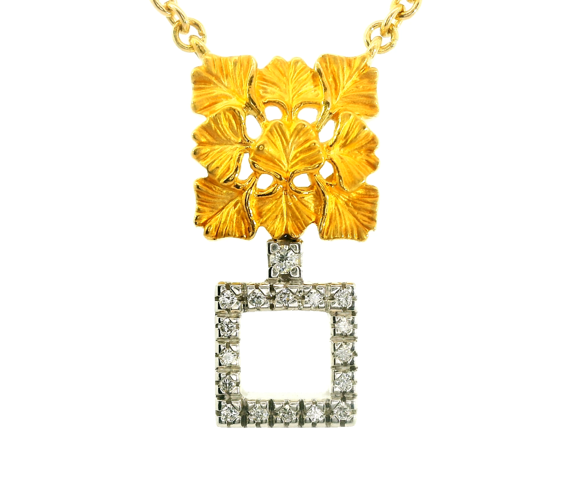 Представляем вашему вниманию оригинальное золотое колье с бриллиантами 0.09ct от всемирно известного бренда Carrera y Carrera из коллекции Ginkgo.