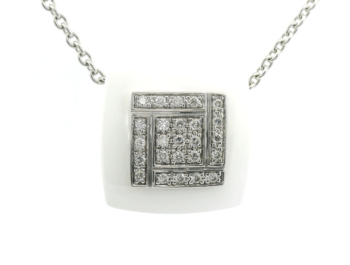 Представляем вашему вниманию оригинальное золотое колье с белой керамикой и бриллиантами 0.15ct от всемирно известного бренда Guy Laroche.