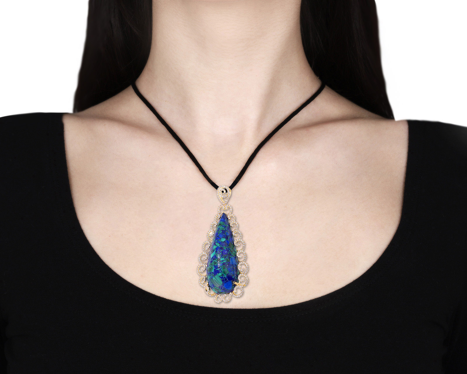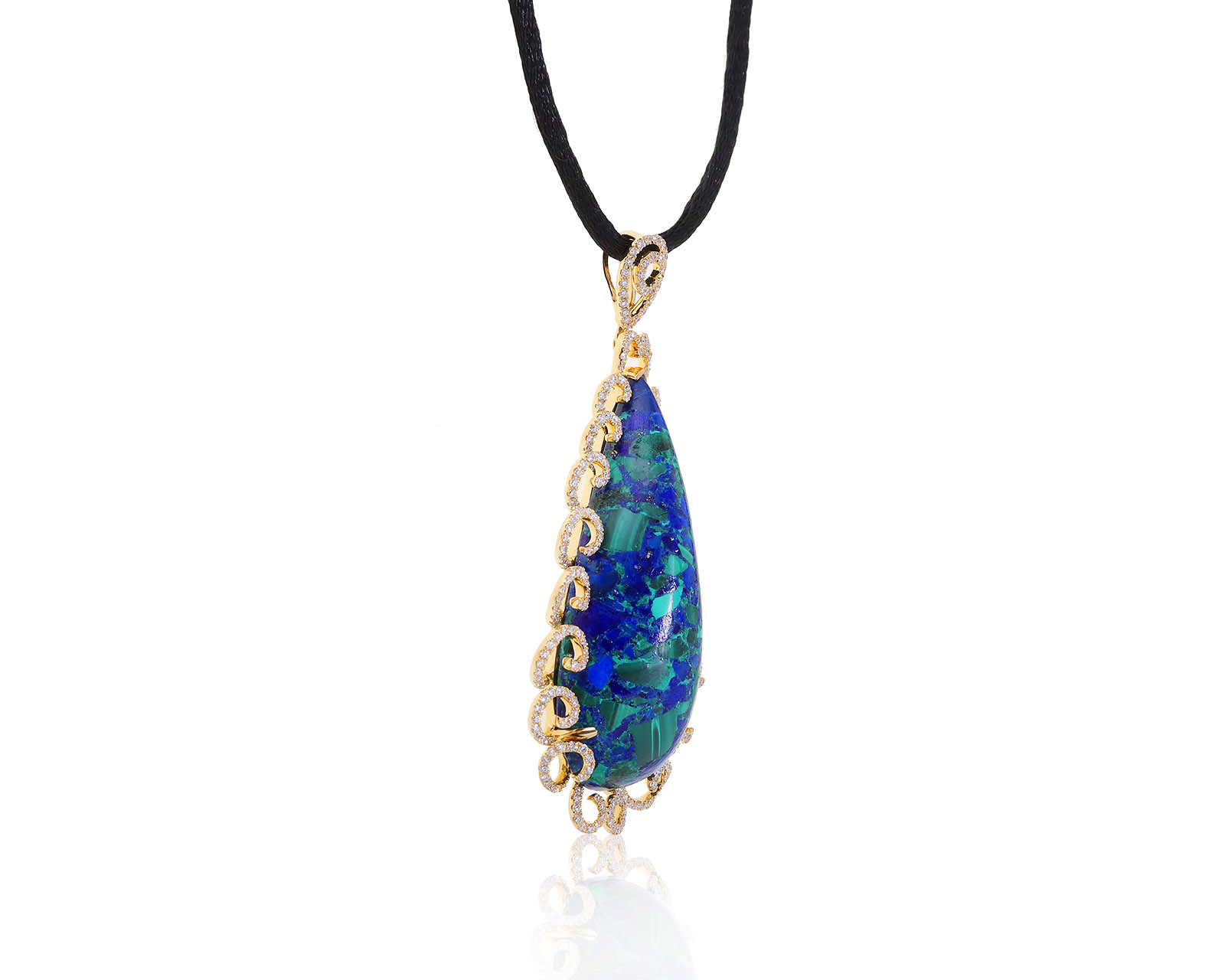 Золотой кулон с кабошоном из малахита и лазурита 57.75ct 290422/6