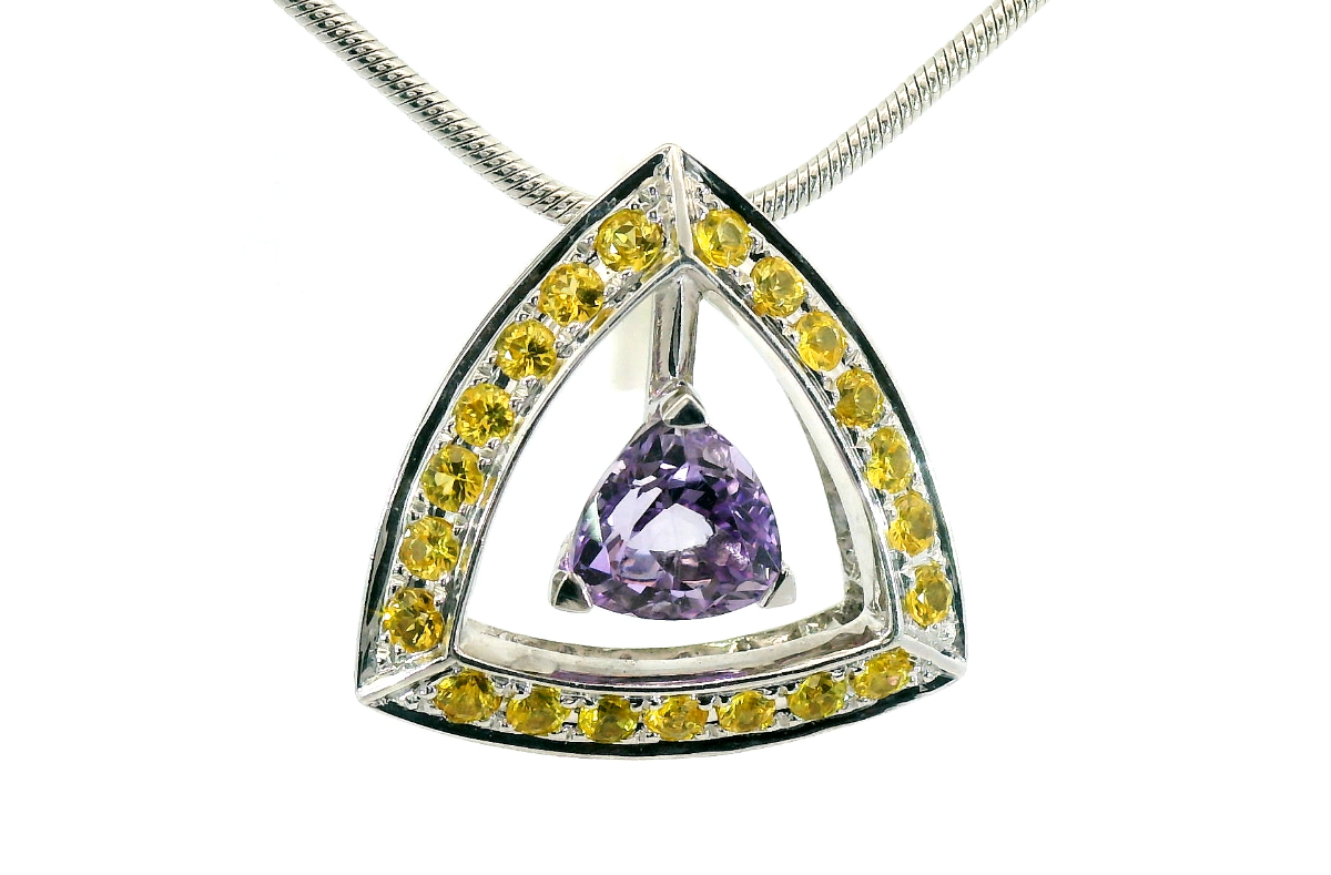 Представляем вашему вниманию оригинальное золотое колье с желтыми 0.63ct и розовыми 0.60ct сапфирами и аметистом 0.60ct от всемирно известного бренда Mauboussin.