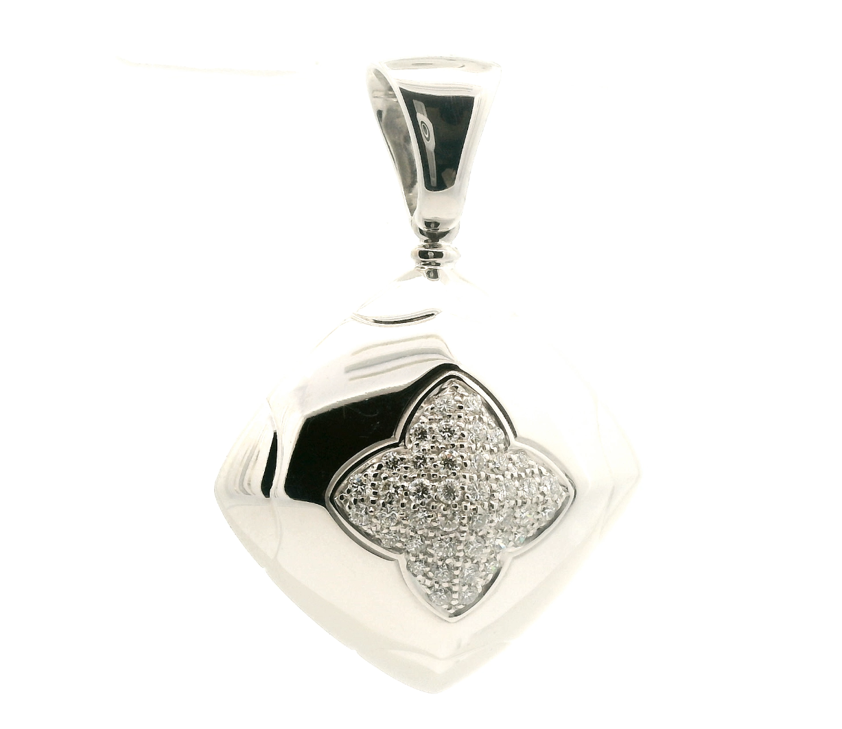 Представляем вашему вниманию оригинальную золотую подвеску с бриллиантами 0.68ct от всемирно известного бренда Bvlgari из коллекции Piramid.