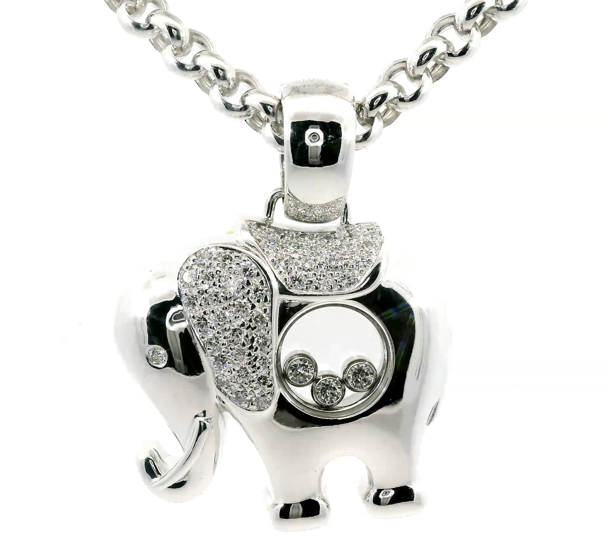 Представляем вашему вниманию оригинальную золотую подвеску с бриллиантами 0.82ct от всемирно известного бренда Chopard из коллекции Happy Diamonds Elephant.