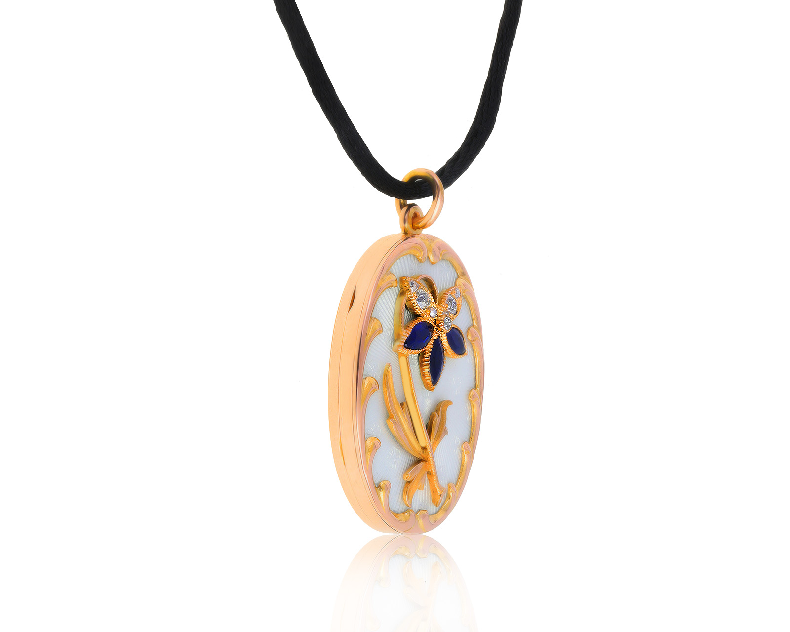 Золотой кулон с эмалью и сапфирами 0.81ct 130721/КМ9