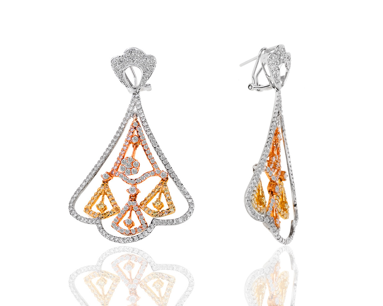 Золотые серьги с белыми 3,75ct и фантазийными 0,83ct бриллиантами 240419/КМ8