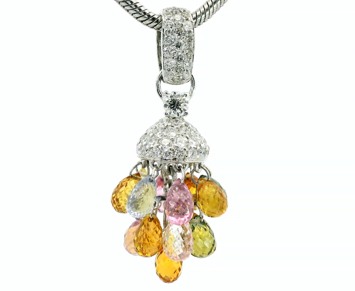 Представляем вашему вниманию оригинальную золотую подвеску с разноцветными сапфирами 8.48ct и бриллиантами 1.15ct от всемирно известного бренда Adler.