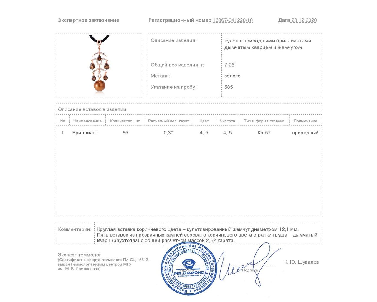 Изысканный золотой кулон с жемчугом 12.10 мм 041220/10
